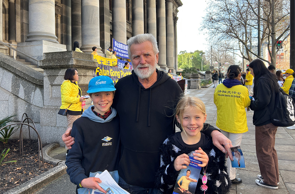 来自袋鼠岛(Kangaroo Island)的诺曼·拉平斯(Norman Lapins)说:“我认为你们做的事是很有意义的,也很和平。今天我们如果没有到城里来,就可能没有机会了解。有些其它国家如中国、俄罗斯,想极权控制,表现出来反人性的作法,我无法想象那里的人民承受的苦难。活摘器官是非常可怕的,绝不能允许。如果人人都能牢记真、善、忍,将会为我们的子孙带来一个更好的世界。请坚持下去。”