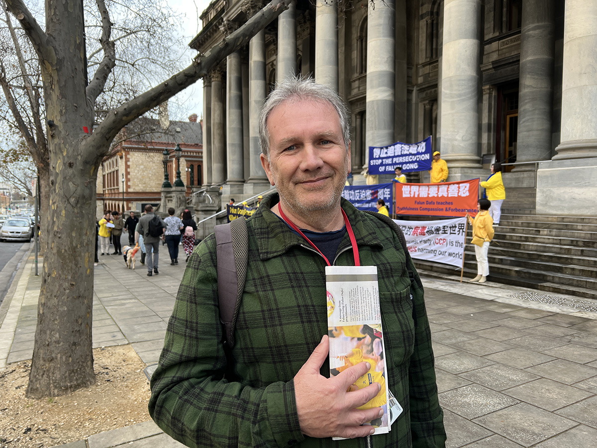 南澳法轮大法学会发言人布莱恩(Brian)表示,法轮大法使千千万万的中国民众身体健康得到改善,同时遵循真、善、忍也提升着人们的精神境界。但中共时任党魁江泽民出于个人妒嫉,和中共相互利用发动了这场迫害。