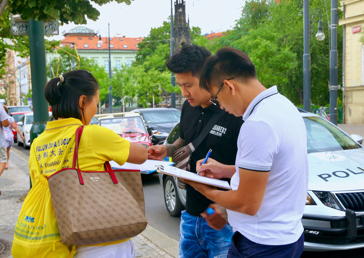 法轮功学员的集会游行活动当天,布拉格天气凉爽,游人如织。时逢中欧最大的民俗节在布拉格召开,来自世界二十多国五十多个团体也聚集在布拉格。法轮功学员的集会与游行都吸引了大量民众驻足观看。多国民众在了解了中共迫害法轮功的真相之后,纷纷签名声援法轮功学员反迫害。