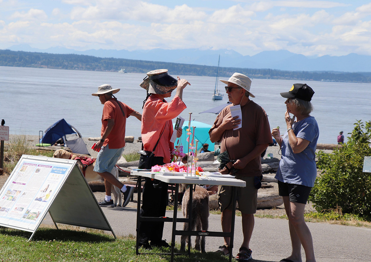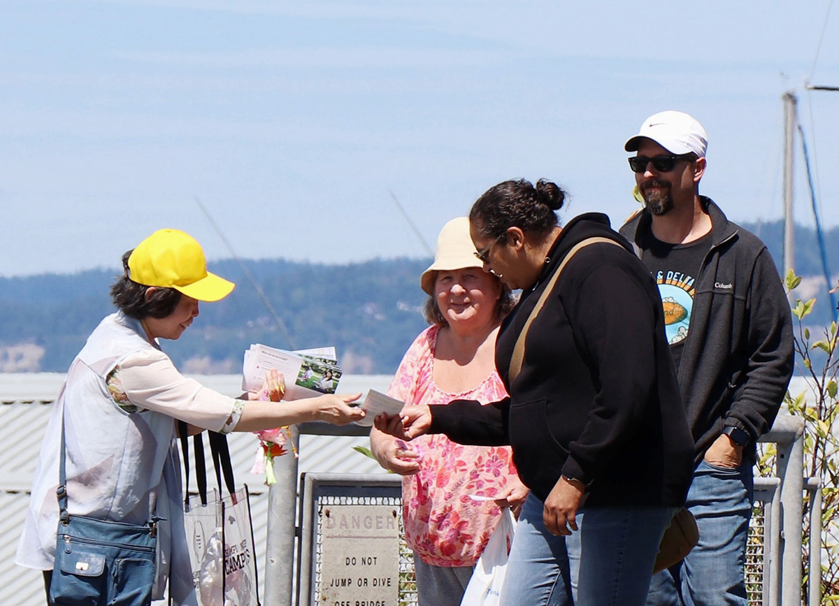 这天,天清气朗,滨海海滩公园的游人中有本地居民,也有外来游客,他们有的观赏鲸鱼;有的赶海拾贝;有的随意散步;有的欣赏美景。法轮功学员祥和的炼功场面让人们停下脚步,他们有的来咨询如何学习法轮功;有的听闻中共迫害法轮功的暴行,表示震惊;还有的想提供帮助制止中共的迫害。