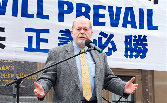 他最后赞佩法轮大法修炼者在中共持续的迫害下,站起来捍卫人权,勇气可嘉。
