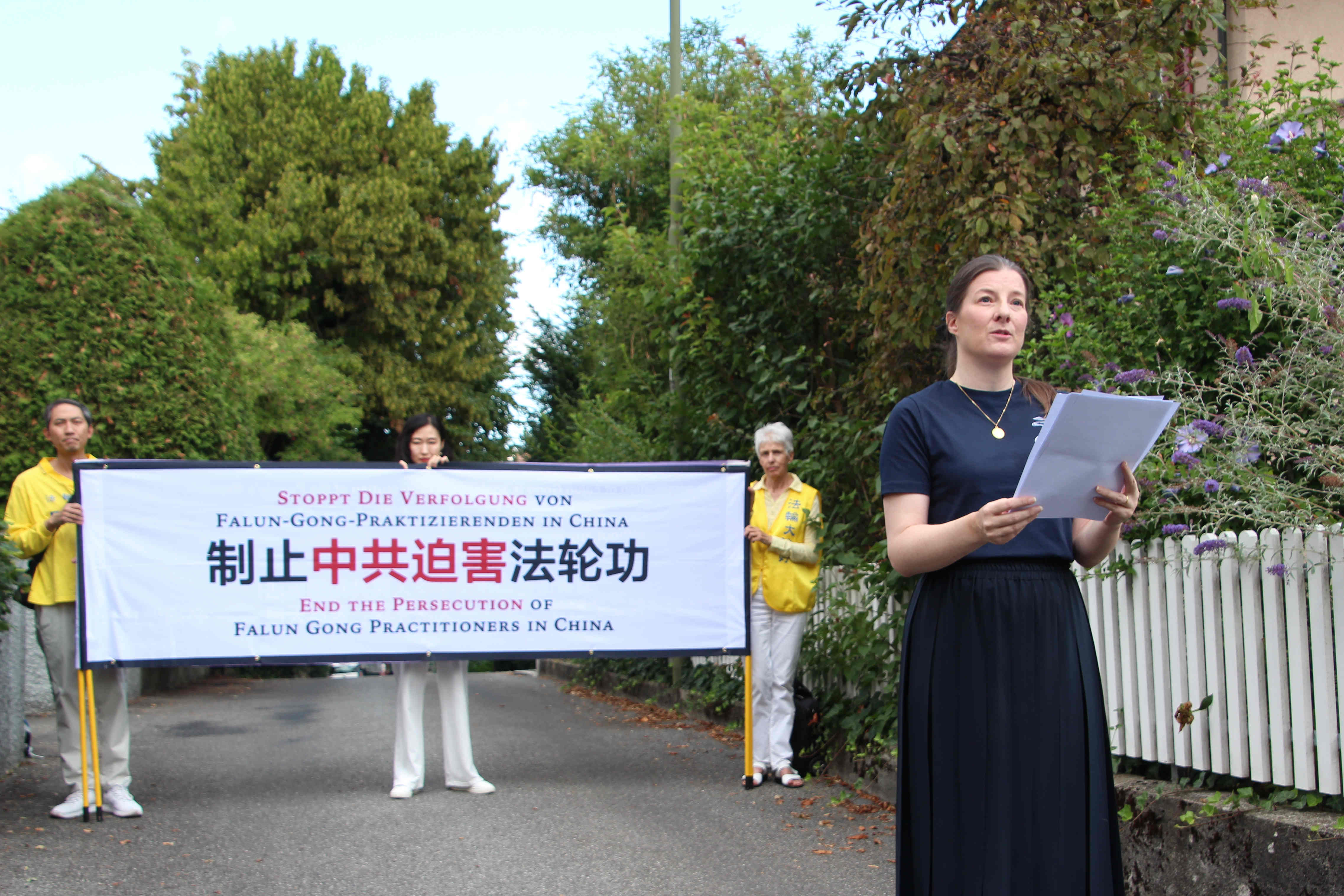 最后她祝法轮功学员:“我祝愿您能继续有勇气,在瑞士及中国勇敢地捍卫自己的人权!”