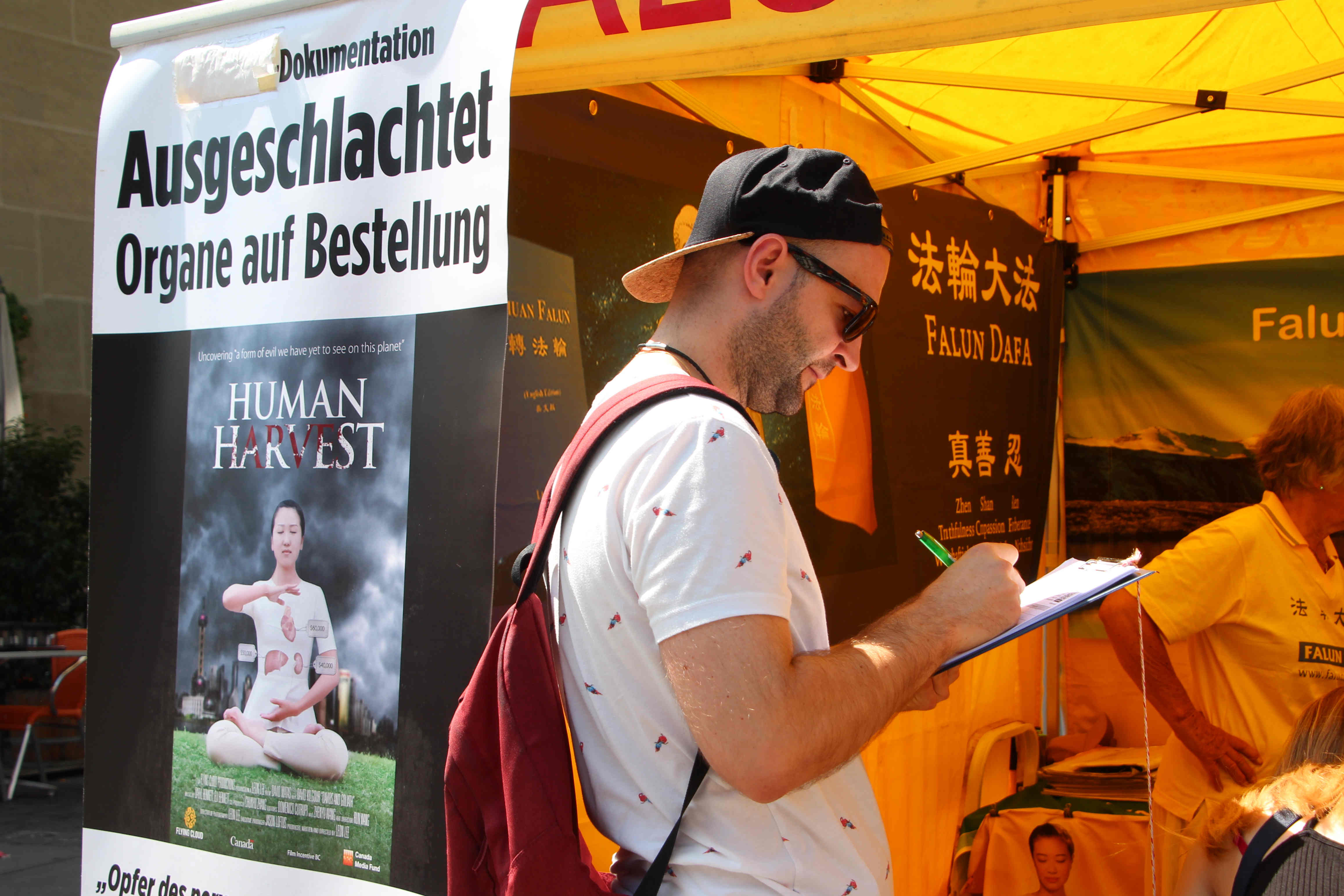 来自奥地利的阿洛伊斯(Alois)也在签名后说:“我们看到中共的迫害,我们希望能支持采取行动,制止迫害(法轮功)。”