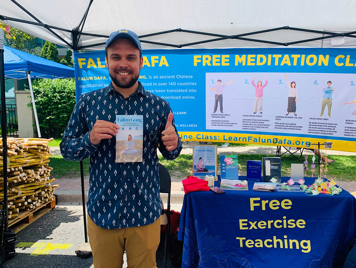 看着展示功法的学员,马里奥说,“之前,我只知道法轮功教做人的道理,不知道还有功法。来到展位,我发现原来功法不仅仅能带来精神的升华,同时是对身体的锻炼。”
