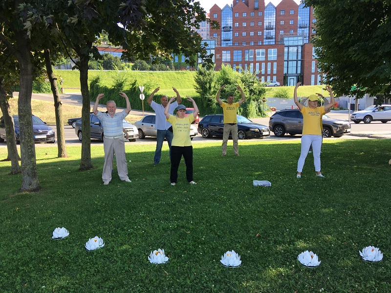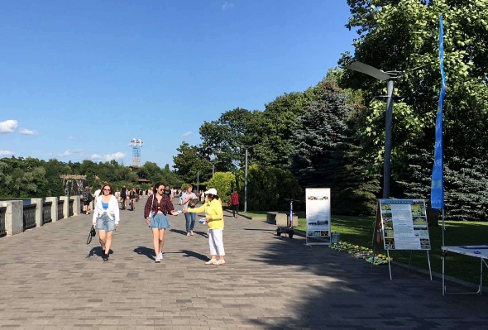 【明慧网二零二三年七月二十七日】今年是法轮功学员反迫害二十四周年,二零二三年七月十六日,来自乌克兰的部分法轮功学员在第聂伯罗(Dnipro)大堤上举行活动,有的发放真相资料,有的演示五套功法,告诉人们修炼法轮大法使人身心受益,揭露中共残酷迫害中国法轮功学员,还向路人征集“解体中共(End CCP)”请愿书的签名。