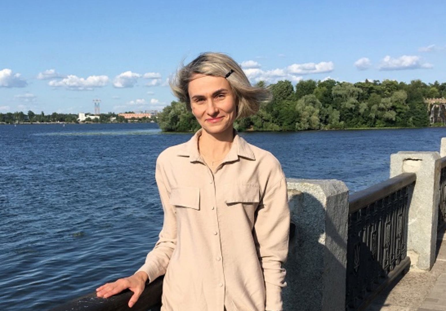 娜塔莉亚·维塔(Natalia Vyuta)是一名心理治疗师,她之前已经听说过法轮功。当天她来到展位前与学员们交谈,并表示了对法轮功的支持。