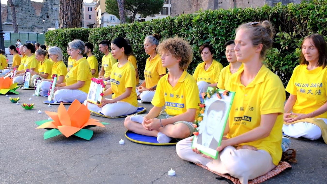 二零二三年七月二十一日上午九点开始,法轮功学员在罗马中共大使馆外举行和平抗议活动,揭露中共对法轮功学员长达二十四年的残酷迫害,呼唤社会正义良知,共同制止迫害。