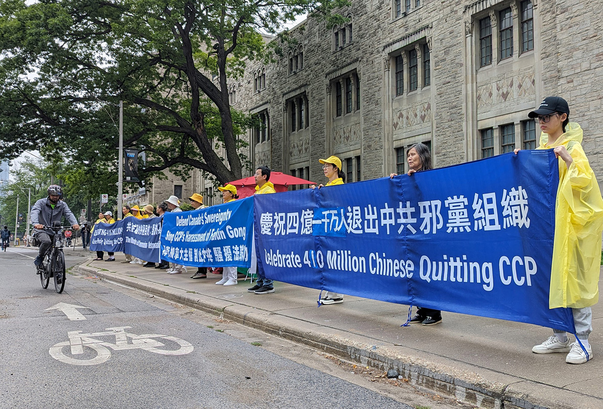 【明慧网二零二三年七月三日】(明慧多伦多记者站报道)​二零二三年七月二日,加拿大多伦多法轮功学员在多伦多市中心举办了真相横幅展,庆祝四亿一千万中国人退出中共党、团、队组织,迎接光明未来。随着《九评共产党》问世近二十年,中国民众陆陆续续表态抛弃中共,形成了势不可挡的“三退”大潮。