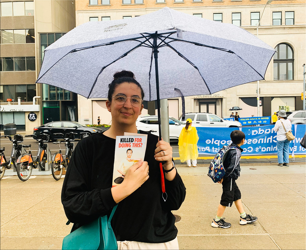 萨内拉(Sanela) 是法国人,两年前来多伦多工作。她在公园看到过正在炼功的法轮功学员。她说,“当时,我完全不知道在中国中共不让人炼法轮功。”