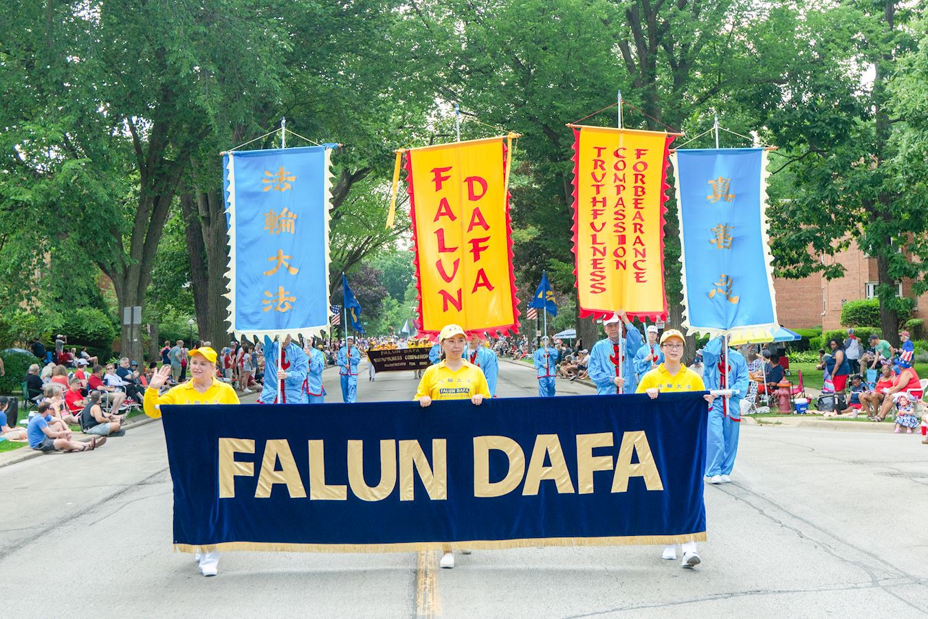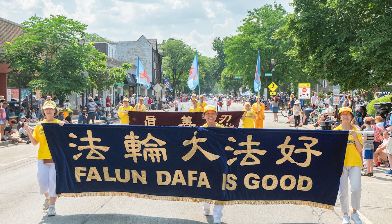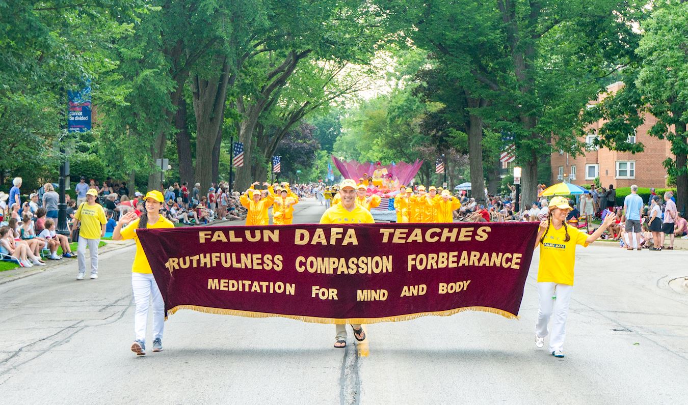 法轮功团队悠扬的音乐和鲜艳的色彩已成为埃文斯敦游行的一道风景。阿恩·阿斯特罗姆(Arn Ahlstrom)不停地赞叹:“法轮大法的花车是今天游行花车中最漂亮、最好的!”“真美啊!太棒了!”