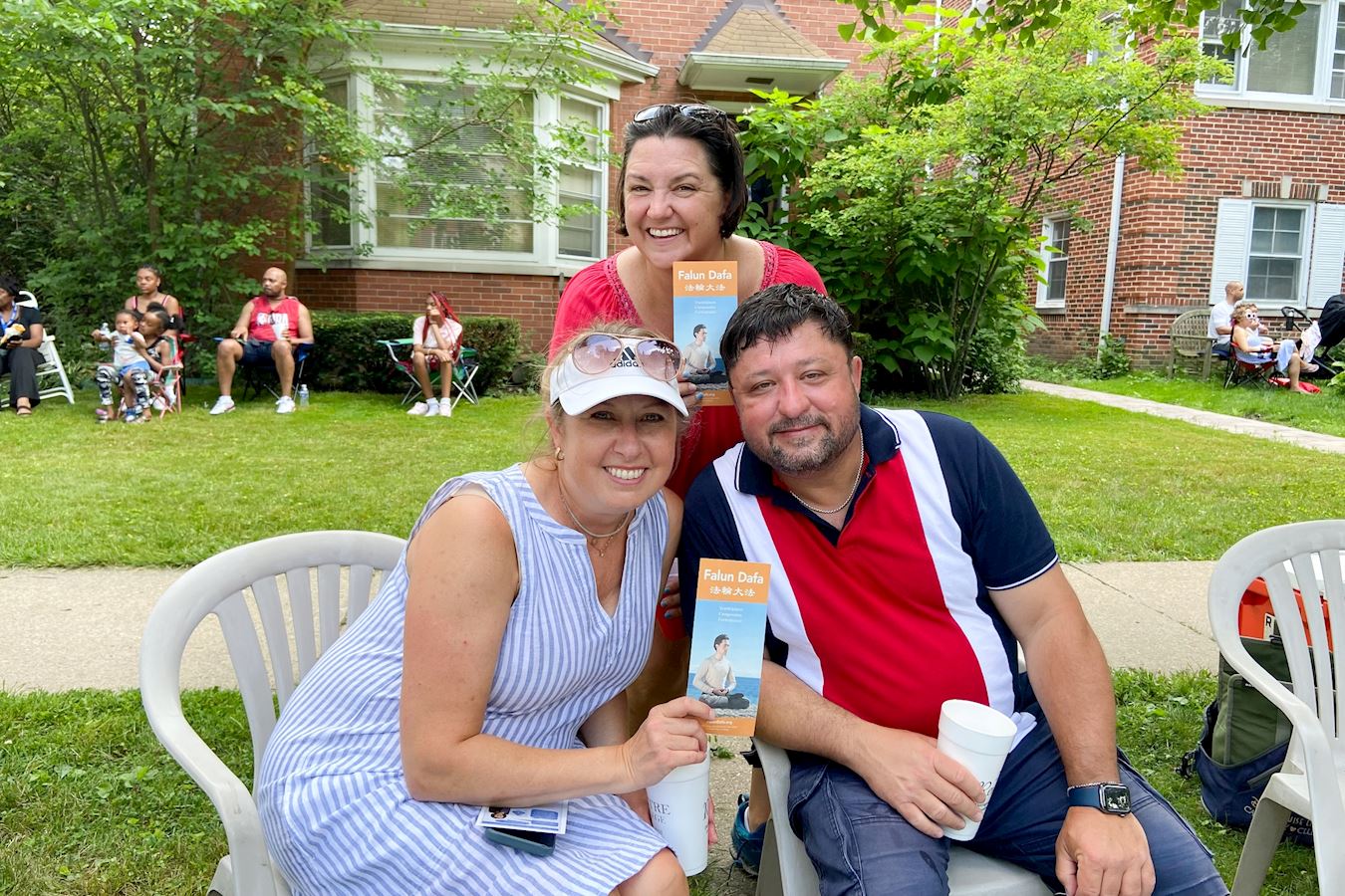 住在附近的克里斯·施里纳(Chris Schriner)和克里斯蒂·查尔茨(Christy Chultz)都对法轮功学员的花车赞不绝口:“太美了! 太棒了!”他们对打坐很感兴趣,也很喜欢真、善、忍的原则。他们都认为,“如果每个人都这样做,世界就会和平。”