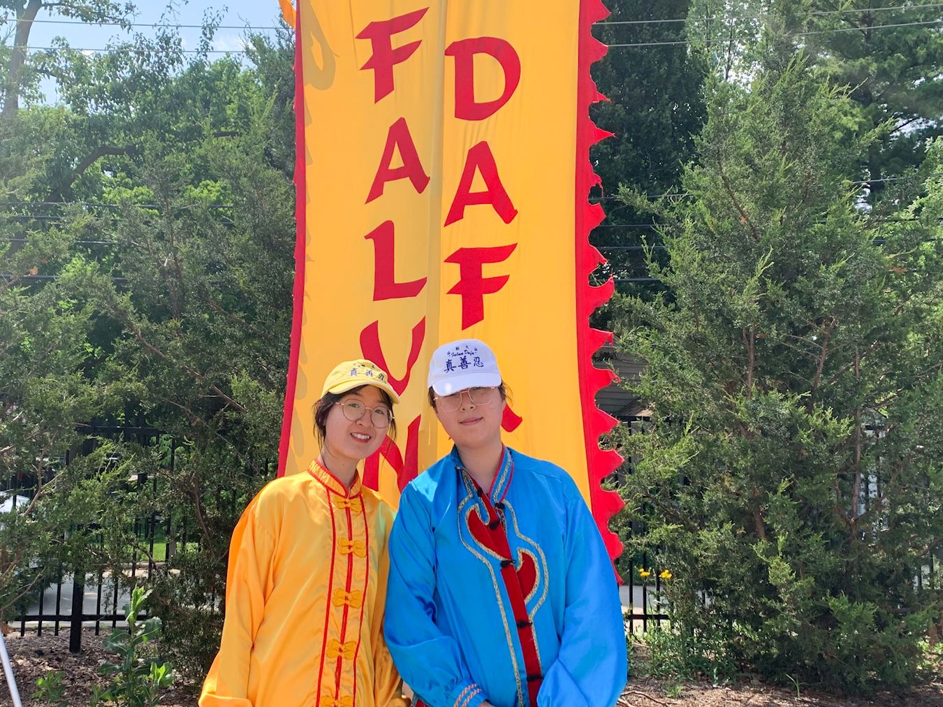 法轮功学员丽莲(Lilian)和南希(Nancy)开车四个小时专门从印第安纳州来参加游行。