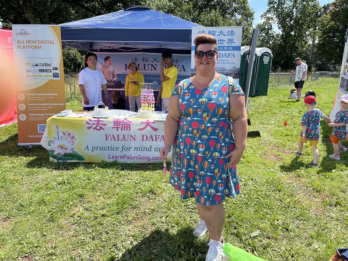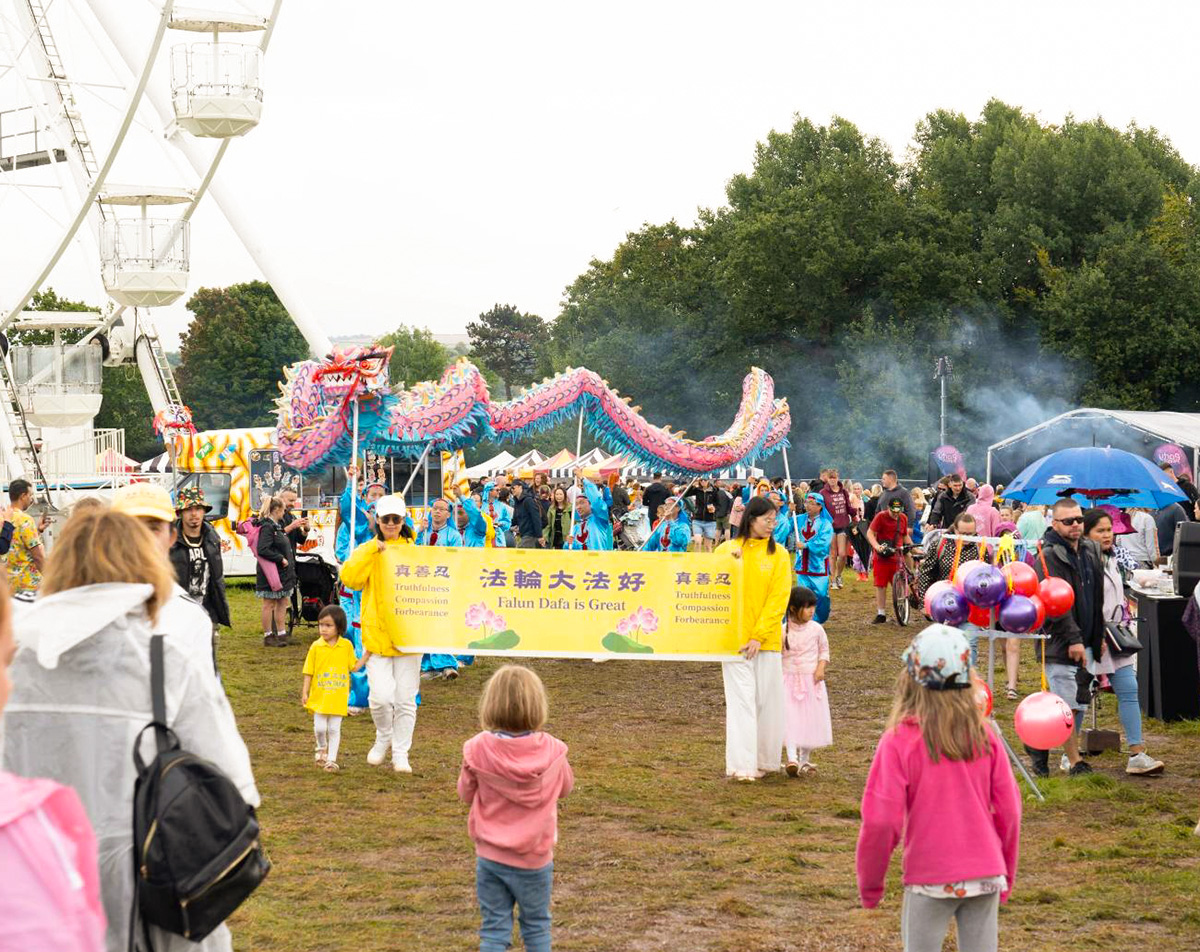 主办方在庄园里设有一百多个摊位、游乐场和当地各种乐队表演。法轮功学员在展位上的功法示范赢得民众赞扬和喜爱。尤其在星期六下午,由于下雨,所有热气球飞行取消,舞龙队在骤雨停息期间还在舞台前表演和绕场游行两次,令成百上千的游客们一扫阴霾,精神振奋,纷纷主动接过法轮功真相传单,并称赞道:“太棒啦!”