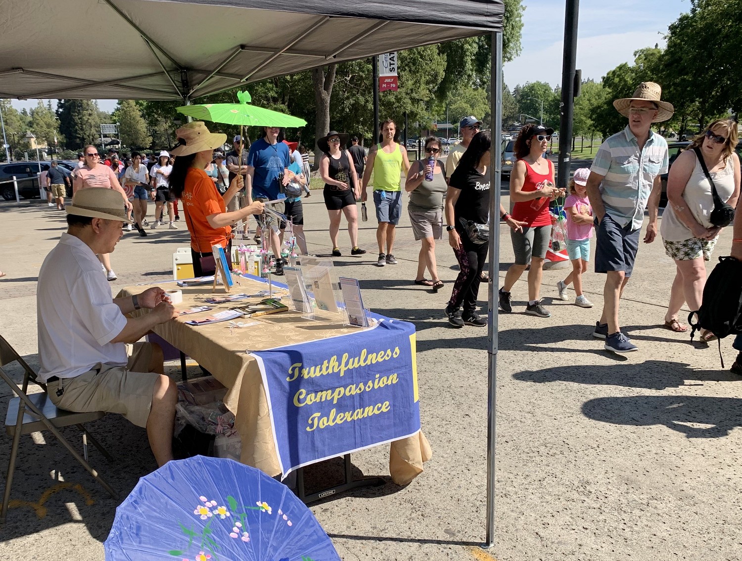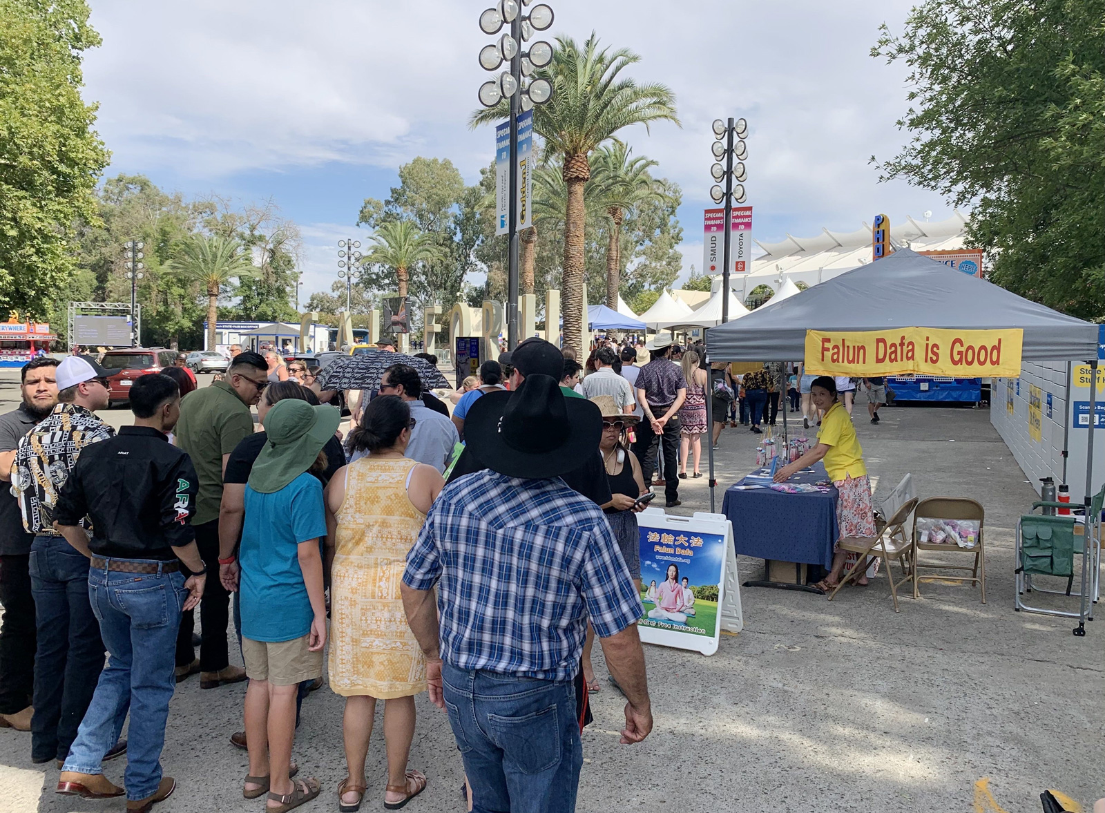 ![]() 图1~4:二零二三年七月十五至七月二十九日的连续三个周末,法轮功学员在加州博览会场外的言论自由区设立法轮功展位向民众弘法传播真相。 |