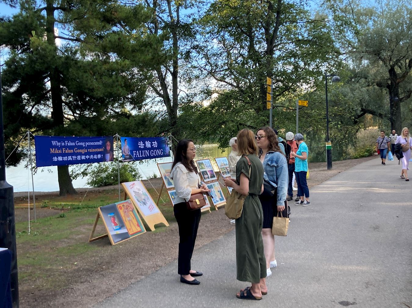 在赫尔辛基机场工作的劳拉说:“听了所有这些法轮功修炼者的故事,感到非常难过。我觉得修炼者们在这里所做的事情非常重要,而且我也相信因果报应。”她毫不犹豫地在请愿书上签名,并对学员送给她的精致莲花表示感谢。