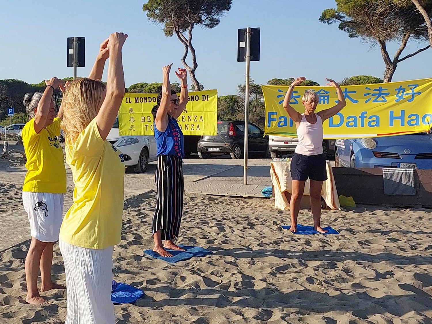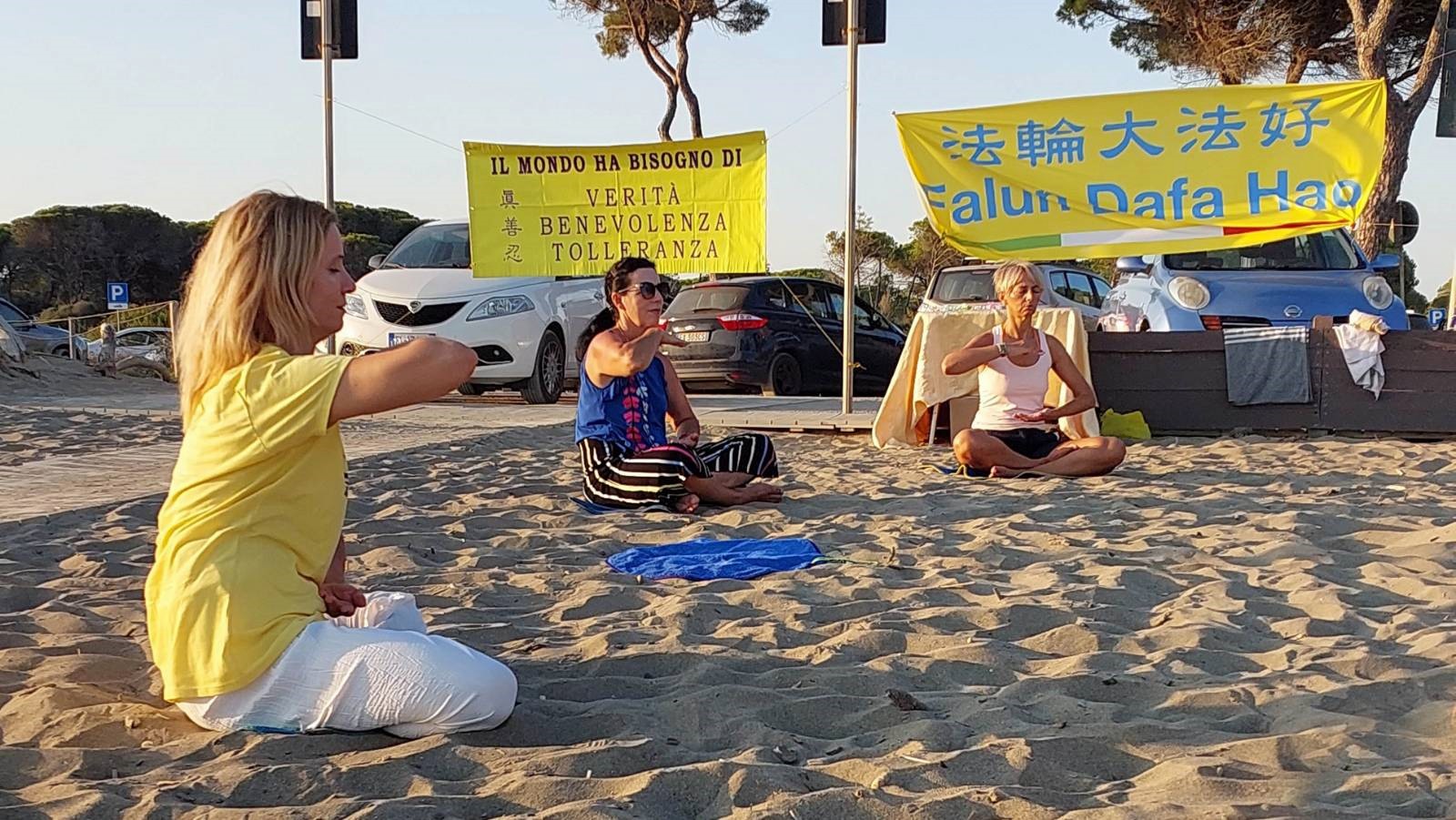 ![]() 图1~3:二零二三年八月十九日,法轮功学员在阿尔贝塞(Alberese)海滨公园,举行炼功弘法活动。民众和游客踊跃加入学炼法轮功。 |