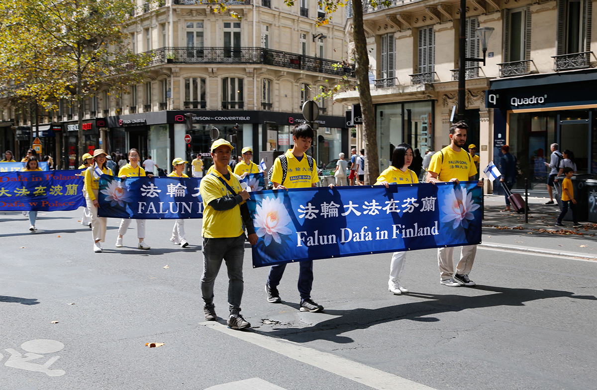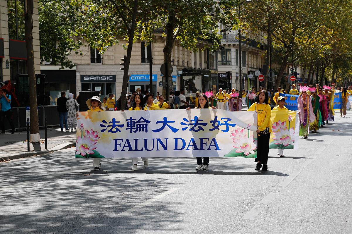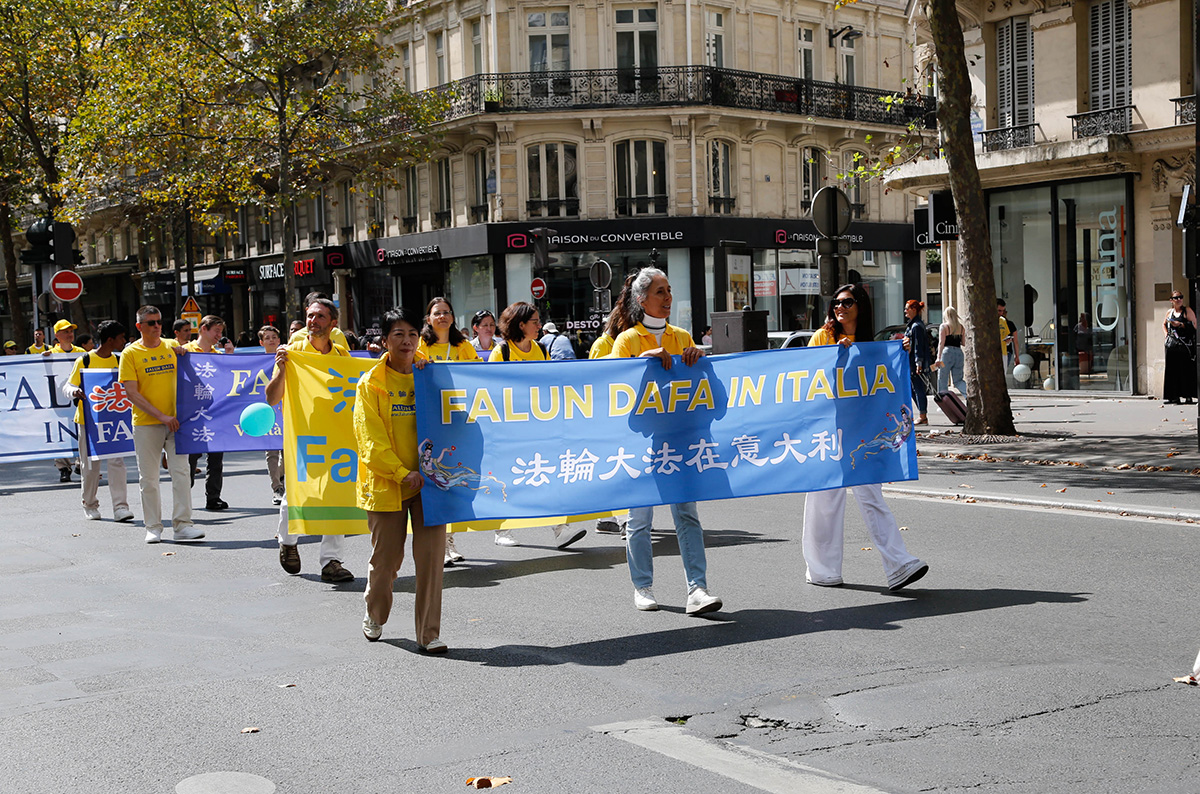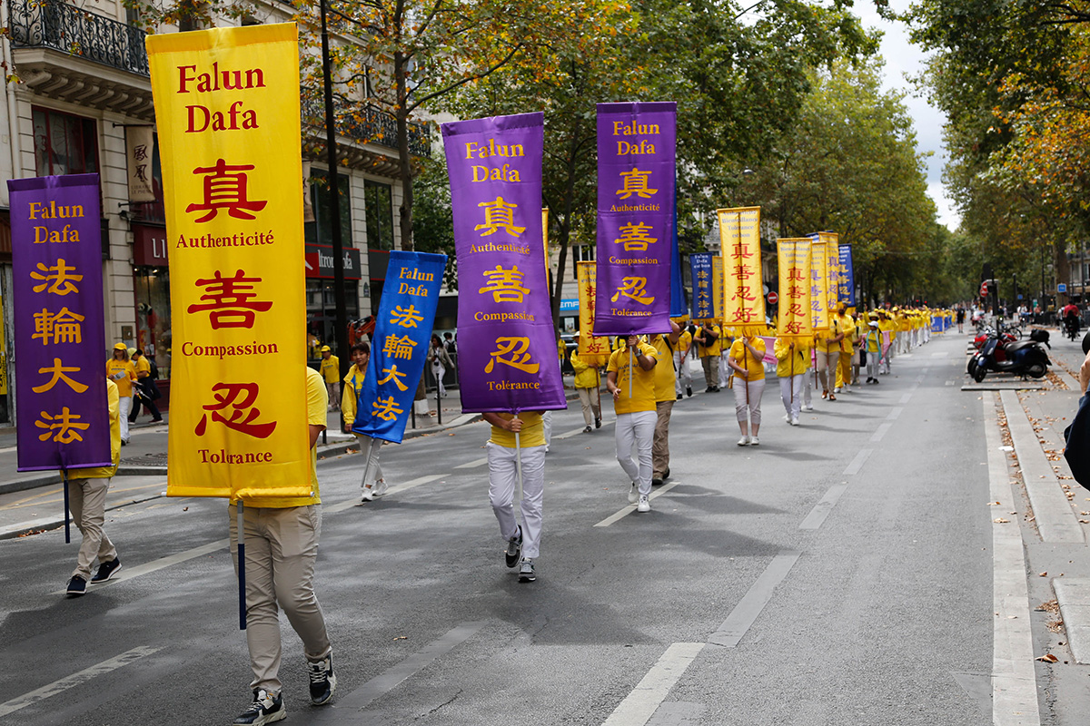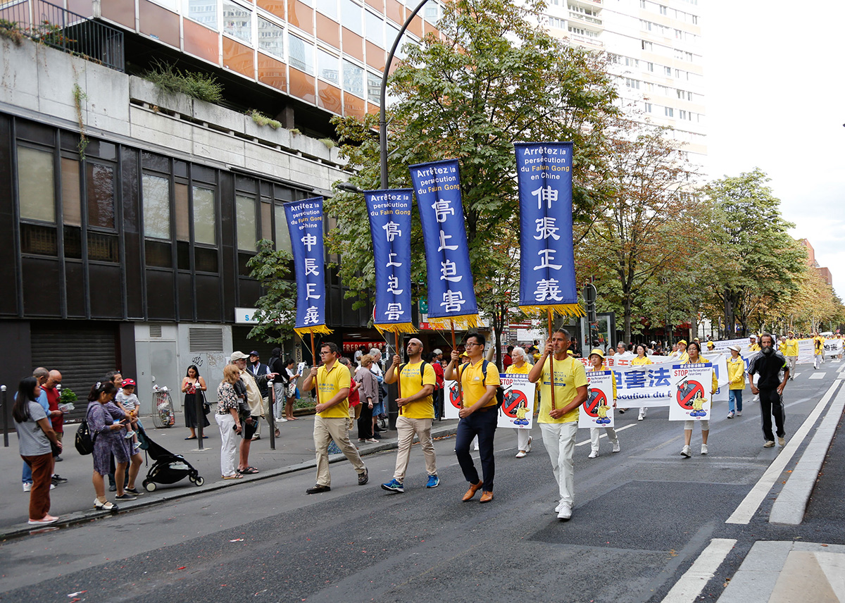 法国民众亚齐德·杜阿齐(Yazid Douazi)在博堡街看完了游行的全程。他说:“对人类来说,真、善、忍是很好的价值。这样的游行很好,可以改变世界。”