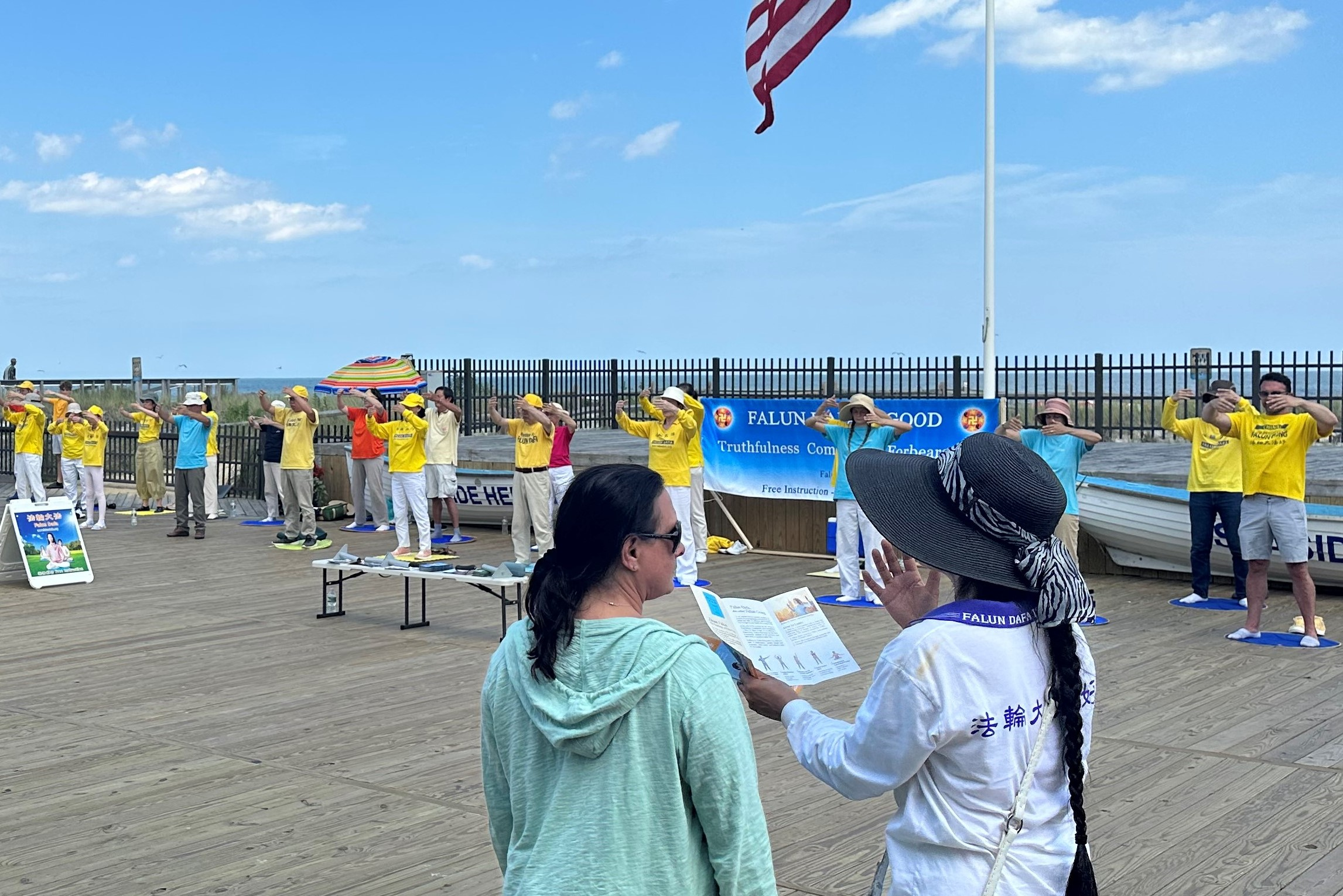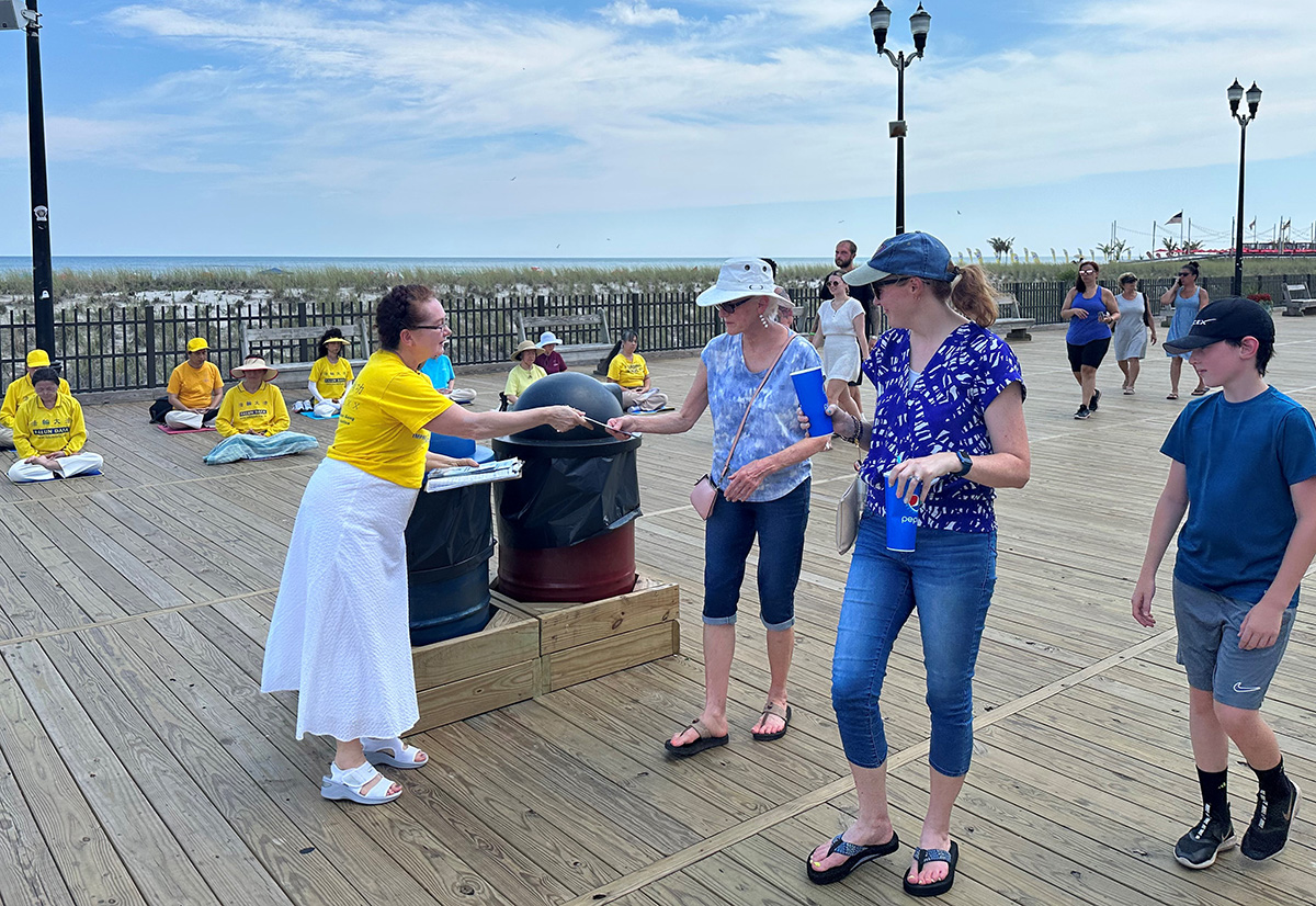 【明慧网二零二三年八月五日】二零二三年七月二十九日,美国新泽西州部分法轮功学员来到海滨高地镇(Seaside Heights),向众多游客介绍法轮功(也称法轮大法),并揭露中共长期迫害法轮功的真相。