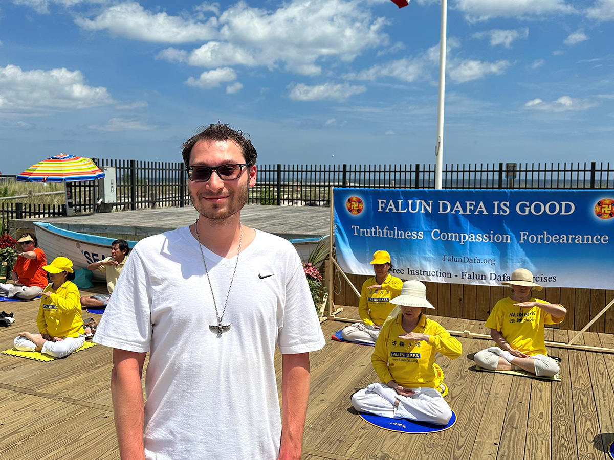 在费城一家心理治疗中心担任技术员的卢西诺·斯佩拉(Lucino Spera)来海滨度假,他说曾在费城市中心看到过法轮功学员的功法演示,也拿到过真相资料,很高兴在此地又见到法轮功学员的功法演示,“(法轮功)非常平和,能感受到他们非常宁静祥和,富有精神信仰。”他说自己也练气功,气功让他感到更具活力。他表示:“我要进一步了解法轮大法。”