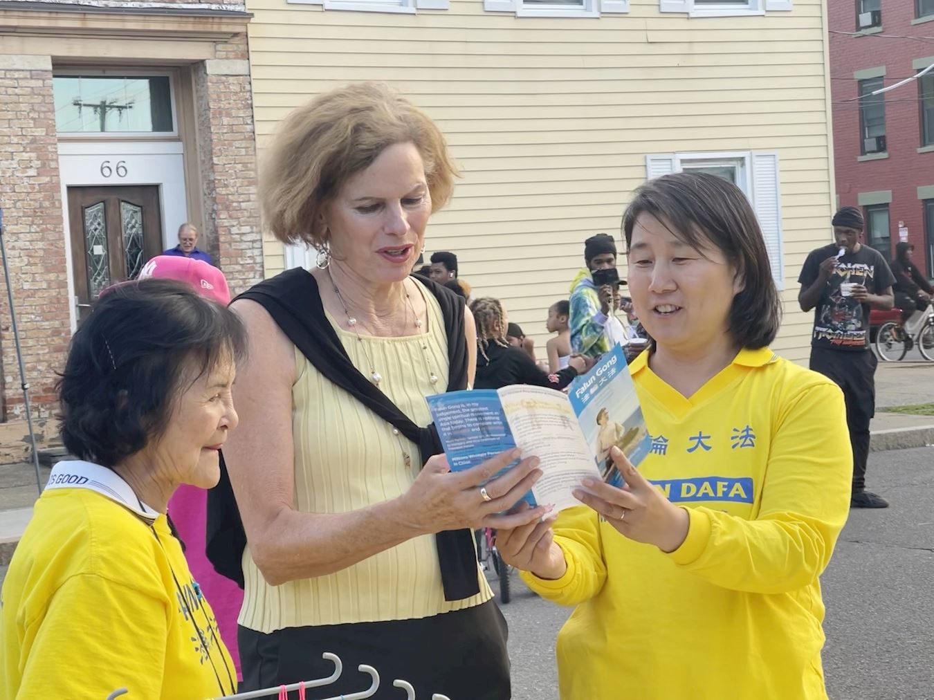 活动期间,纽约州众议员帕特里夏·法伊(Patricia Fahy)来到法轮功展位跟学员们握手。学员给她讲了真相,并把几次活动征集到的厚厚一沓子密密麻麻的签名表给她看,告诉她纽约首府民众对法轮功反迫害的支持。她也拿起笔郑重的签上了自己的名字。