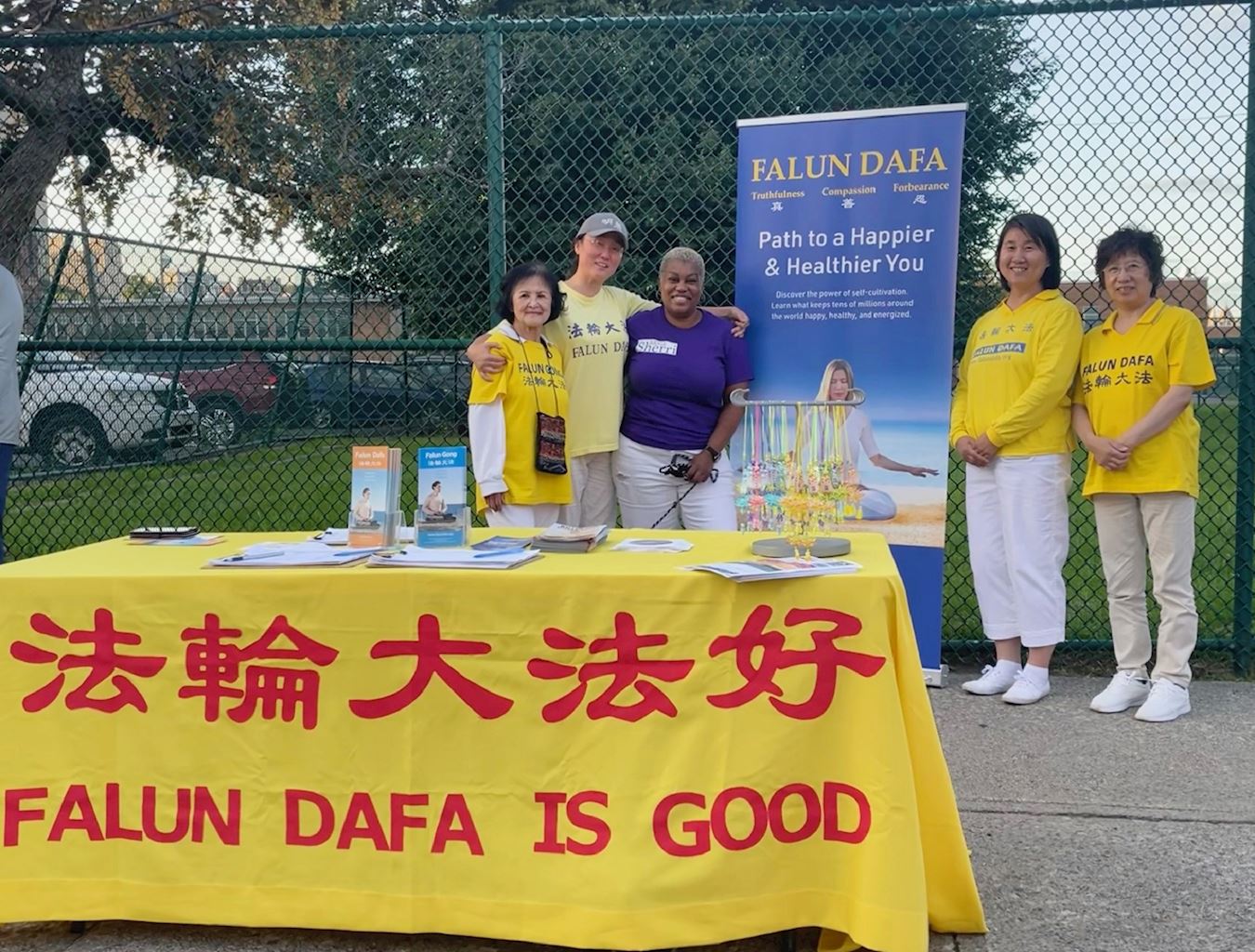 奥本尼郡法院法官雪莉·布鲁克斯(Sherri Brooks)突然出现在展位旁,被一位学员认出,她高兴的与学员叙旧攀谈。原来她早就从学员那里了解了真相。她高兴地和法轮功学员一起合影留念。
