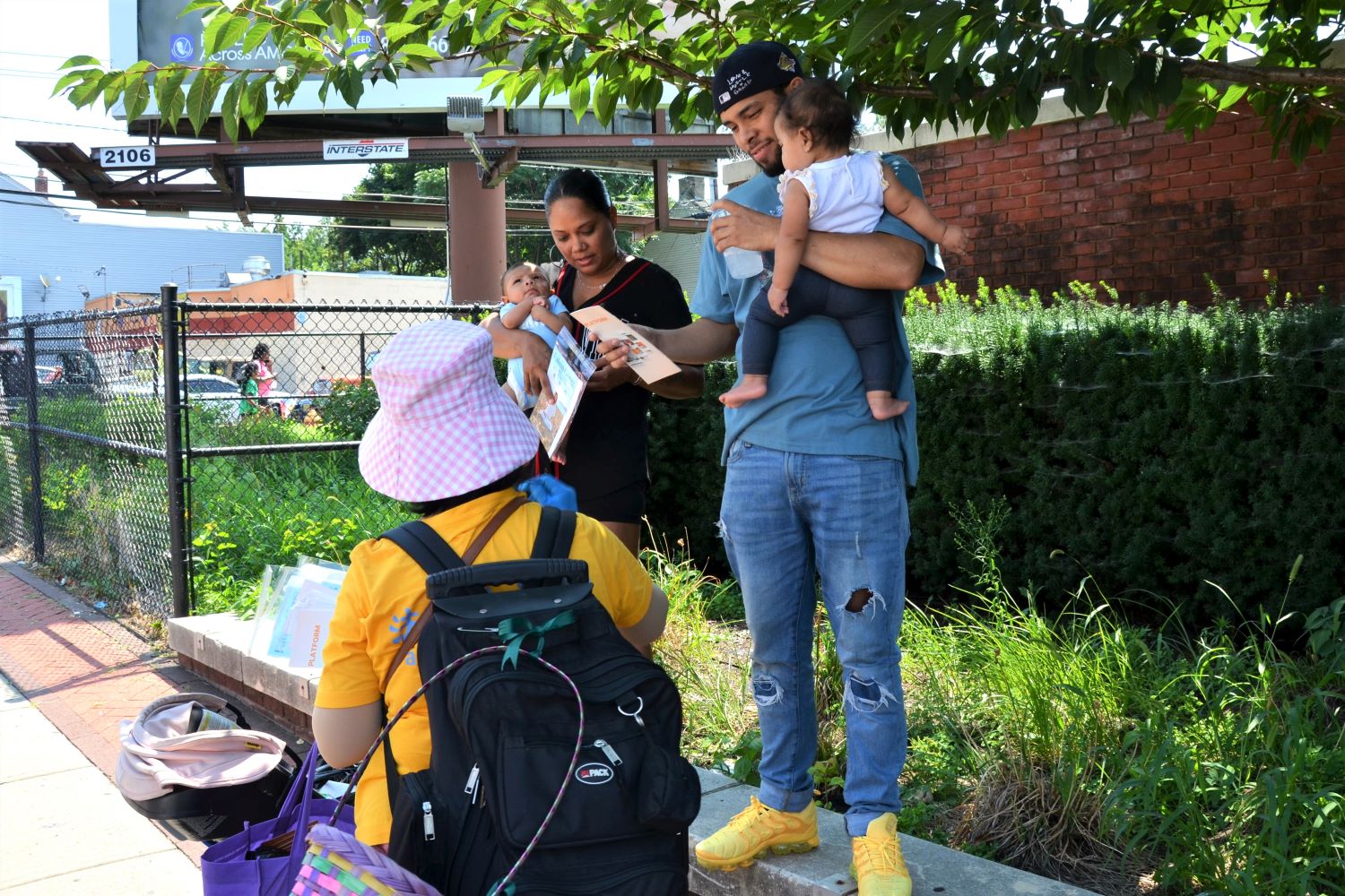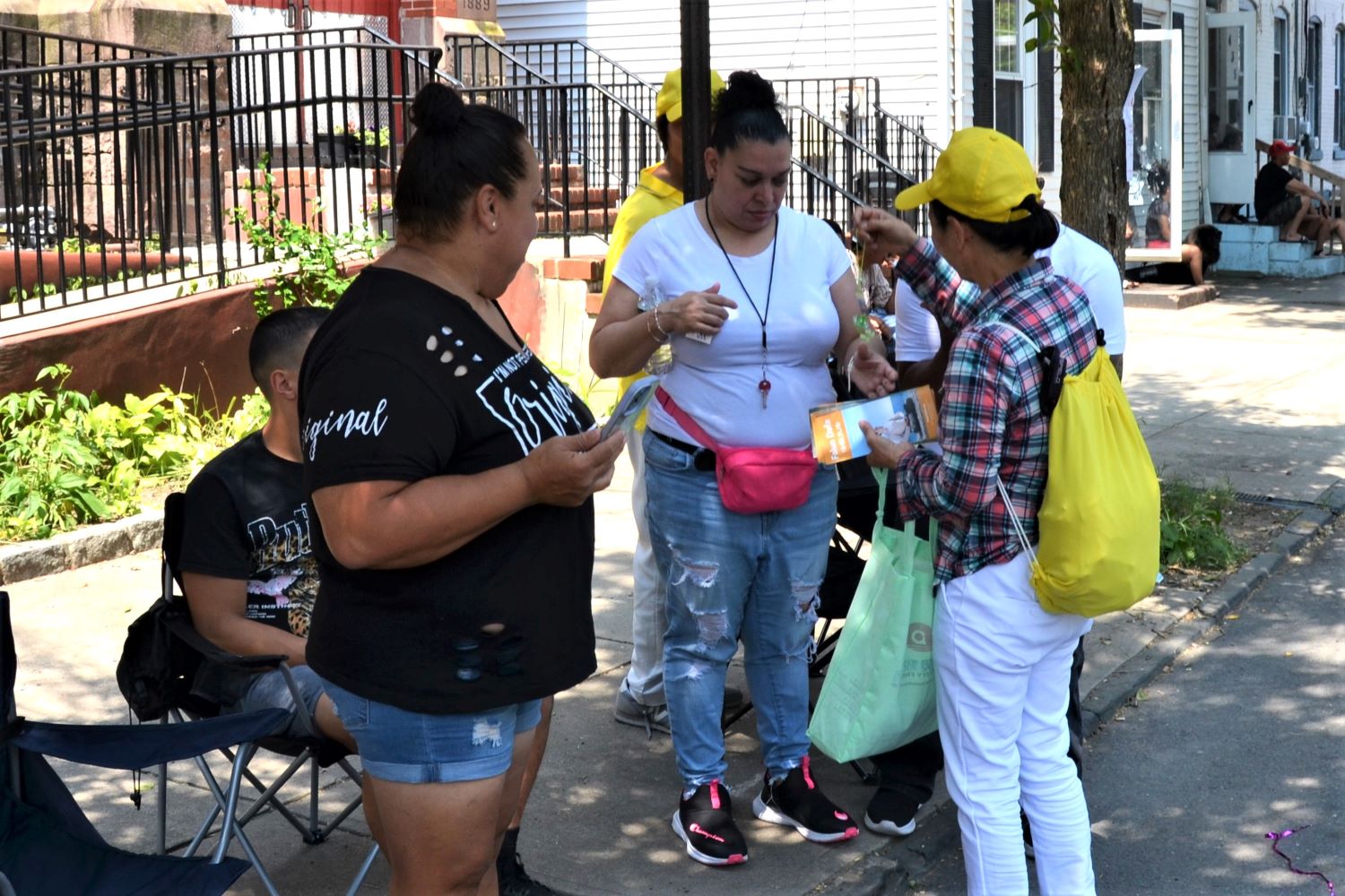 在新泽西州政府住房和抵押贷款金融局担任行政助理的阿奎尔(Ivelisse Melendez Aguirre)在路边为法轮功队伍喝彩。