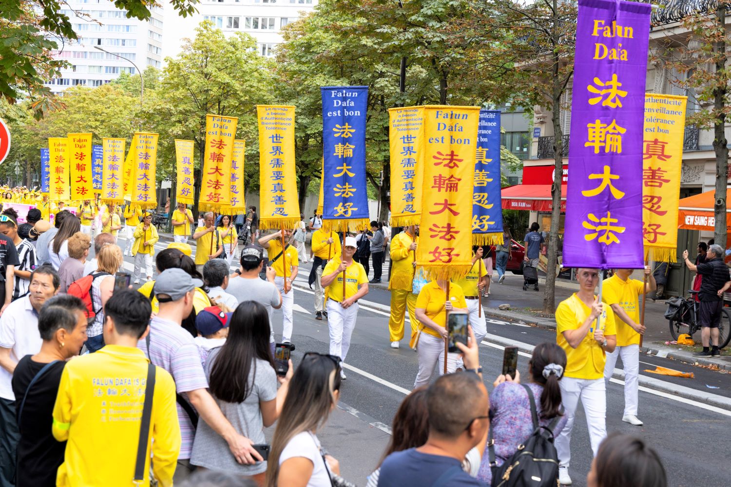 ![]() 图1:二零二三年八月二十六日下午在法国巴黎,来自欧洲各国上千名法轮功学员举办了当天第二场游行。图为游行队伍穿过华人集中的街道。 |