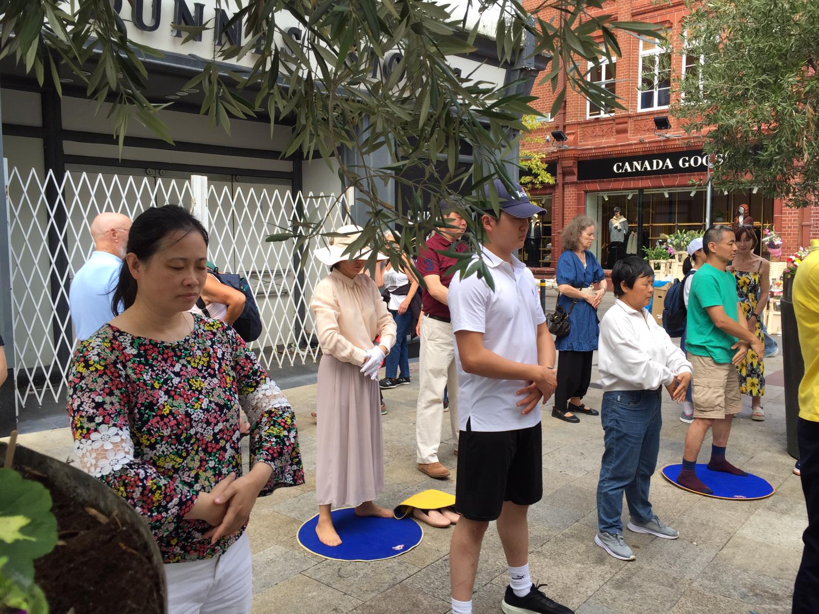 “噢,法轮功!”一个年轻的中国女孩接过学员递上的真相资料脱口道。她抬起头,看了看正在展示功法的学员说:“我知道,那个‘天安门自焚’是假的,对吧?”