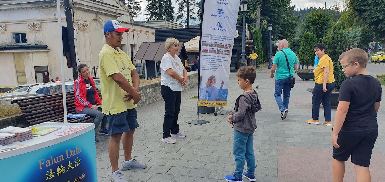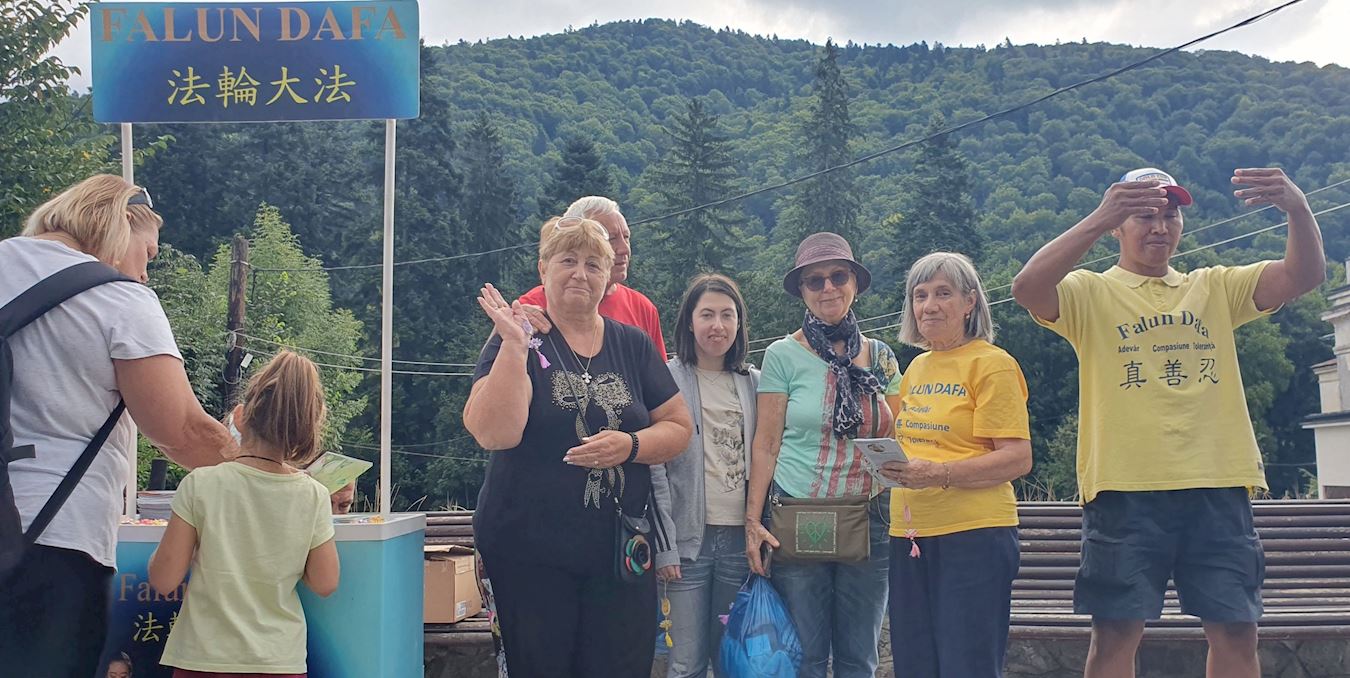 ![]() 图1:二零二三年九月二日,来自罗马尼亚的部份法轮功学员在锡纳亚(Sinaia)举办了信息日活动,人们欣喜了解法轮功及其真相。 |