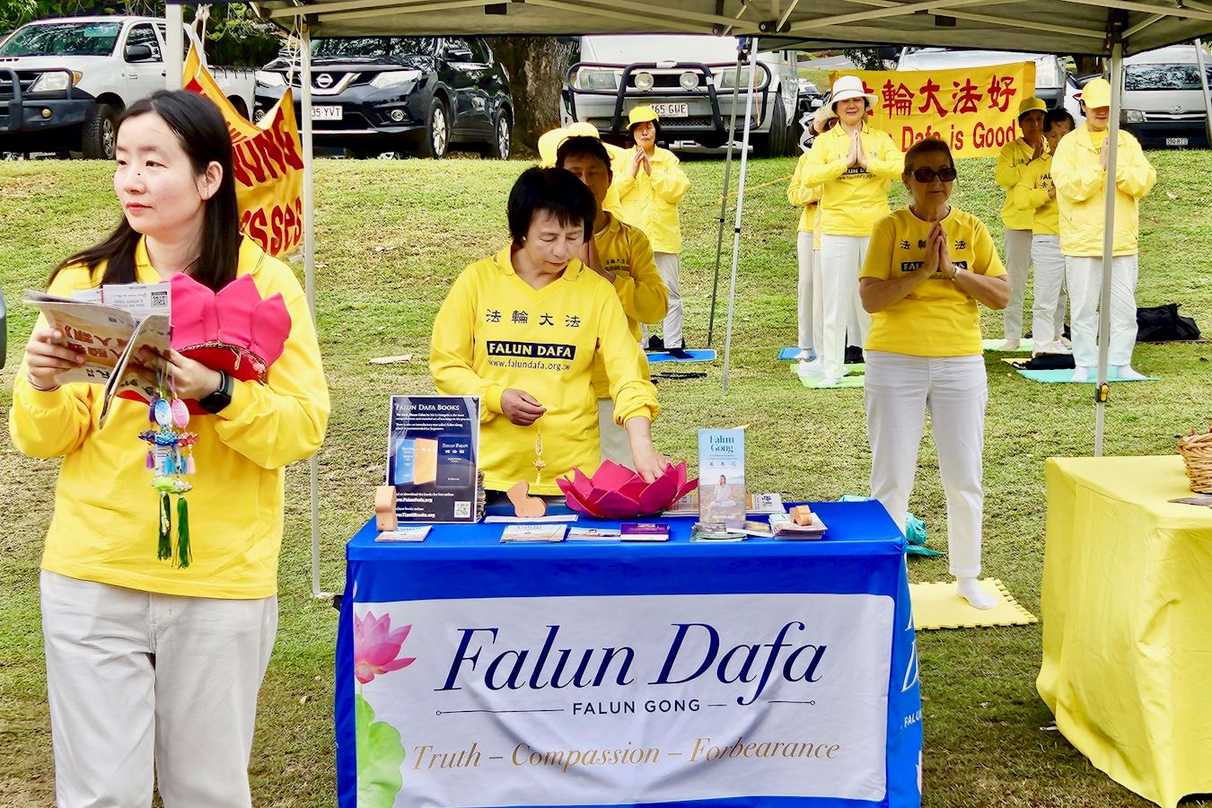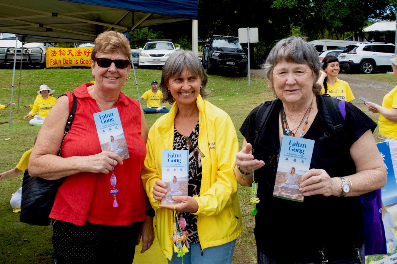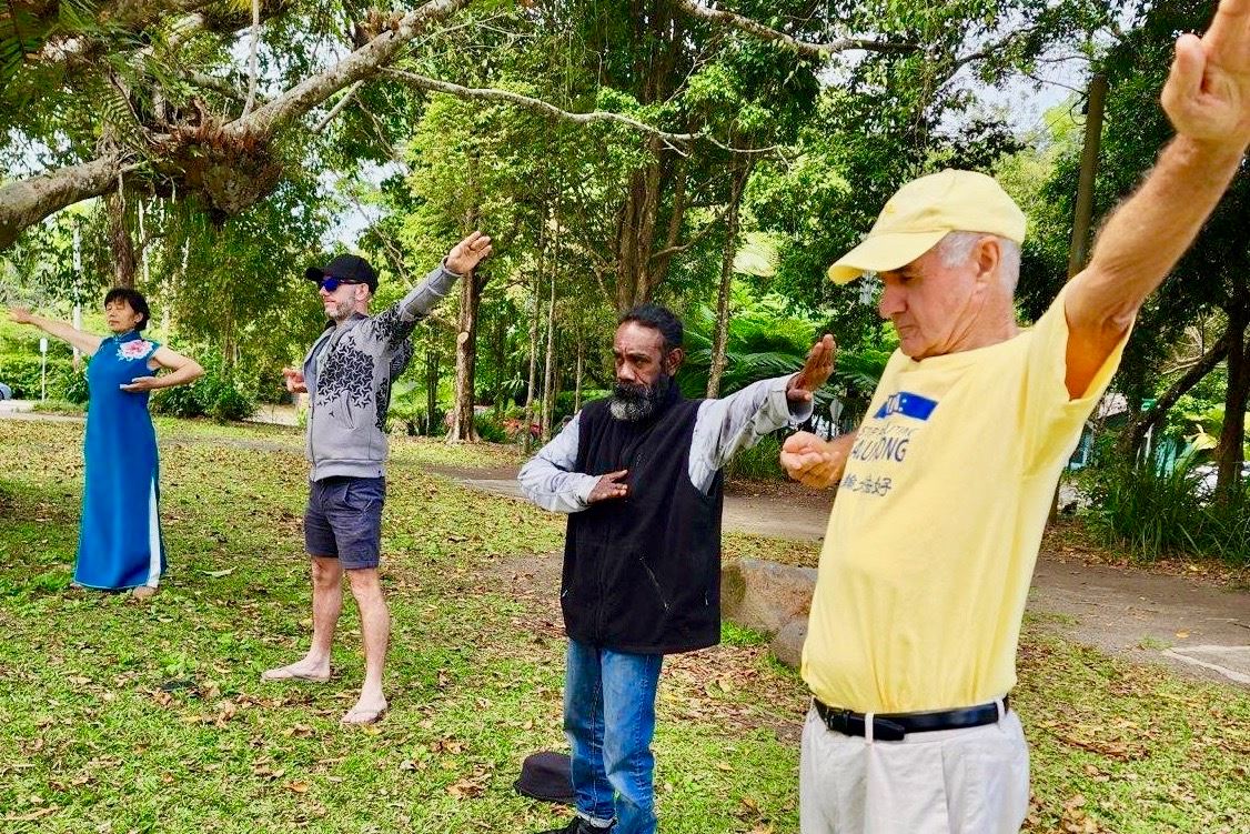 来自墨尔本、布里斯班、麦凯和圣灵岛的部分法轮功学员一起参加了其中的八月二十五日和二十六日在凯恩斯滨海艺术中心(Cairns Esplanade)的活动,二十七日在道格拉斯港集市(Port Douglas market)的弘法活动,以及二十八日在库兰达(Kuranda)旅游胜地举行了集体炼功,向游客们展示了法轮大法的美好。