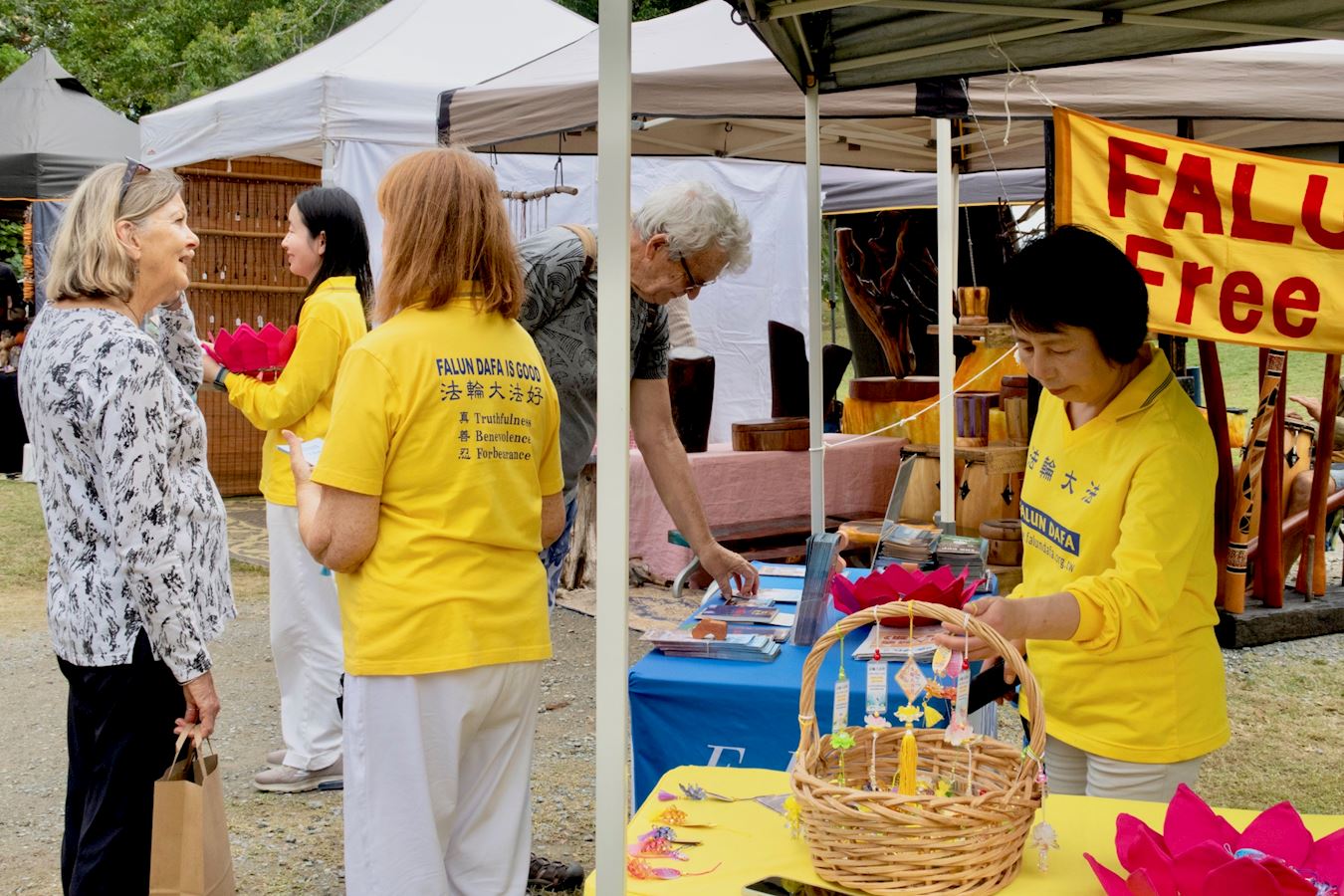 活动期间,法轮功学员的腰鼓队表演,阵阵鼓声,充满了活力,受到民众的欢迎和喜爱。法轮功学员在展位上还演示了法轮功的五套功法,提供免费义务教功,许多民众感受到法轮功学员展示功法的祥和能量,对法轮功产生了极大兴趣,他们不但当时学炼了五套功法,还表示回去会继续了解更多法轮功的真相。有的游客学完功后表示:“我感到内心非常平静、身心融为一体、炼功动作非常流畅,全身充满了正的能量。”