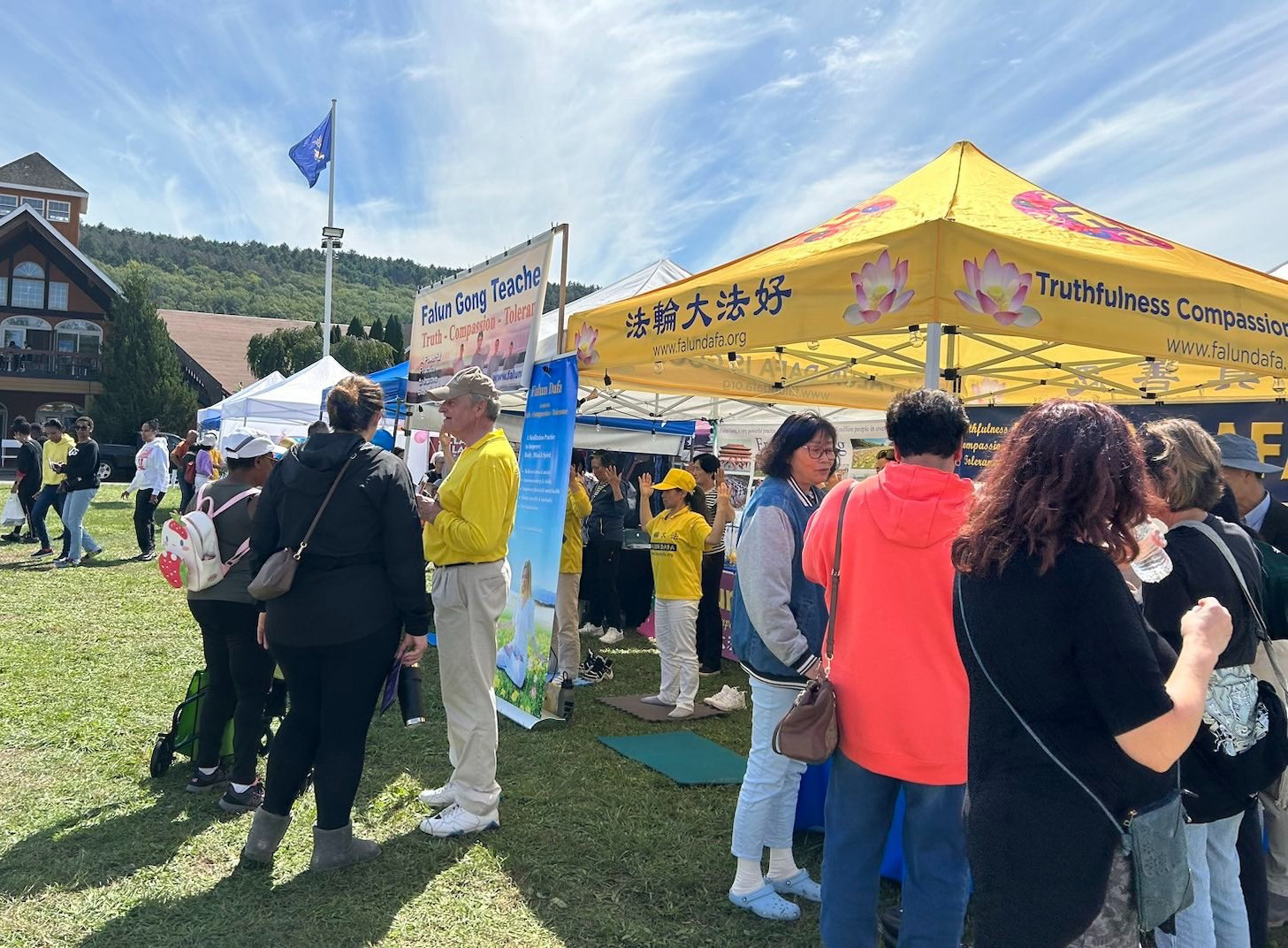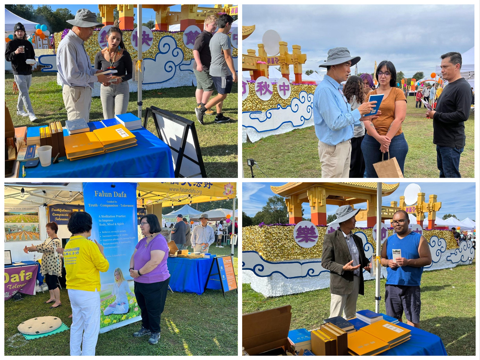 【明慧网二零二三年九月二十日】二零二三年九月十六至十七日,纽约法轮功学员应邀参加了上州杰维斯港市(Port Jervis)当地年度盛事——第八届中秋节(Moon Festival),法轮大法的展位成为中秋节的一个亮点,一批又一批民众学炼法轮功,法轮功书籍售出一百多本。