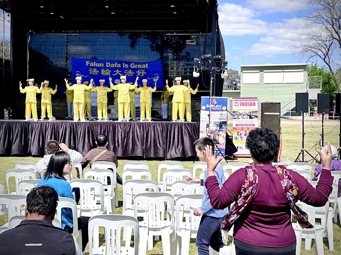 此展会由悉尼社团(Sydney Community Group,SCG)主办,旨在表彰多元文化团体,并展示当地居民和其他社区之间的支持和友谊。法轮功学员在展览会的舞台上向观众演示了法轮功的五套功法以及表演了传统舞蹈和音乐。当地市议员表示:“他们做得非常好,表现出色!”