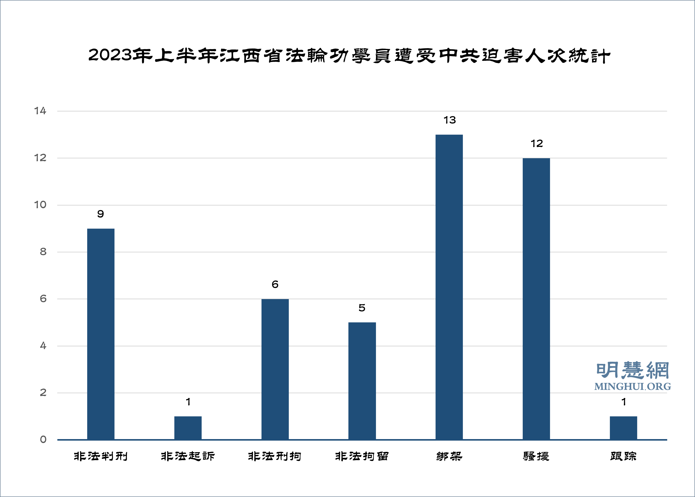 ![]() 图1:2023年上半年江西省法轮功学员遭受中共迫害人次统计 |