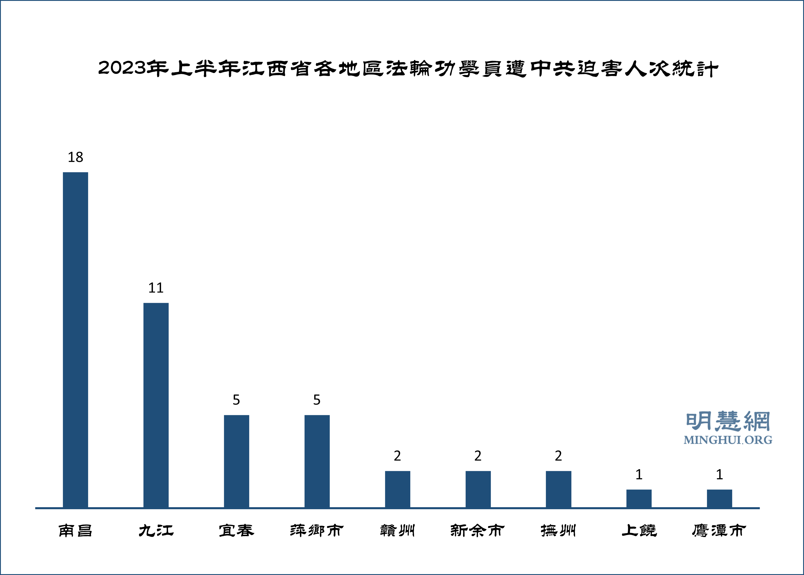 ![]() 图2:2023年上半年江西省各地区法轮功学员遭中共迫害人次统计 |