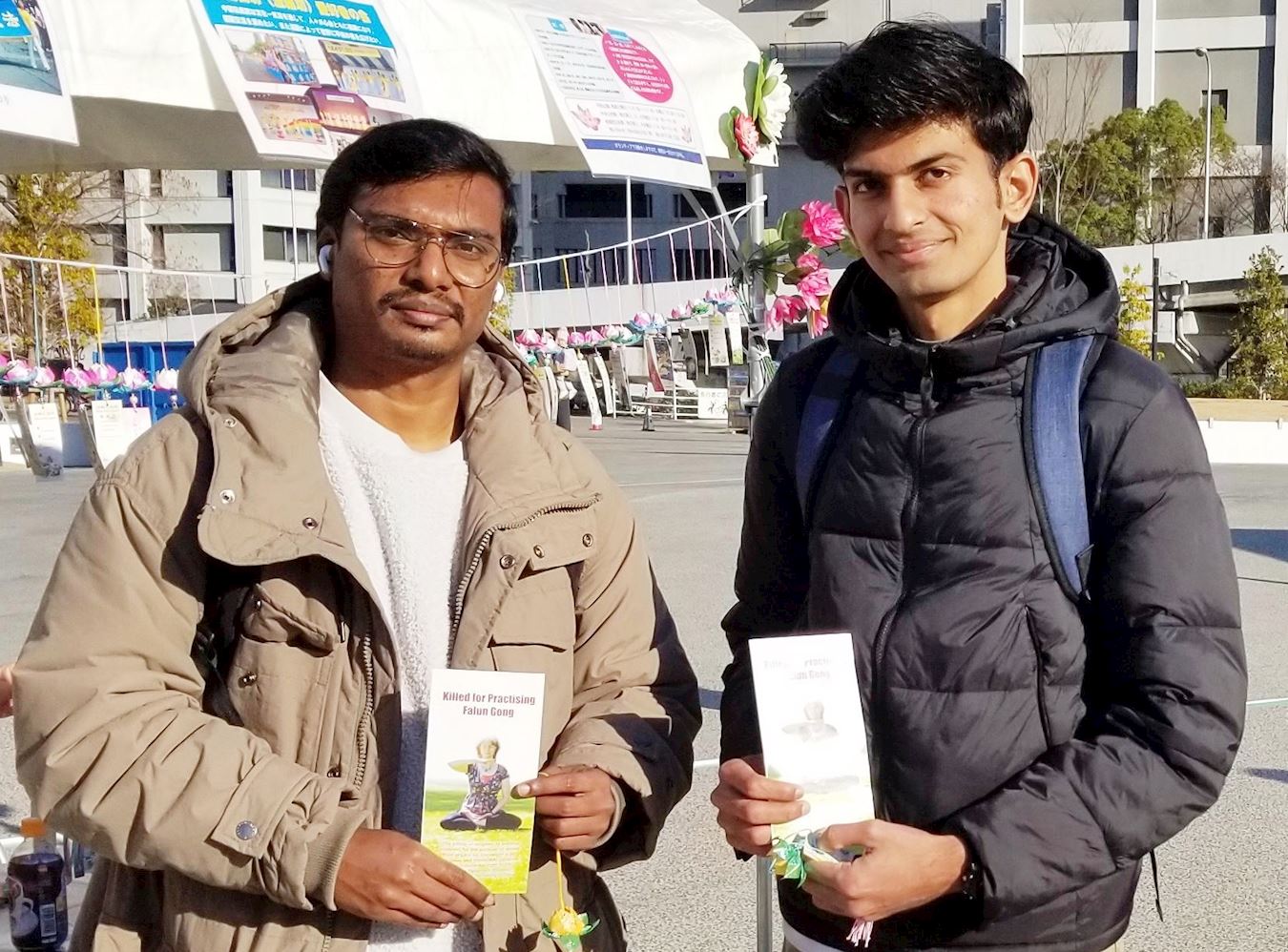 法轮功的展位摆有各种介绍大法的真相资料、手工小莲花,还有学员们准备的传统美食。活动期间有很多家庭前来,有一位孩子的母亲告诉学员,自己孩子的名字叫“莲”,所以他特别喜欢莲花。莲的母亲还告诉学员,她去年和自己的母亲特意去大阪看了神韵晚会,非常美,至今难以忘怀。