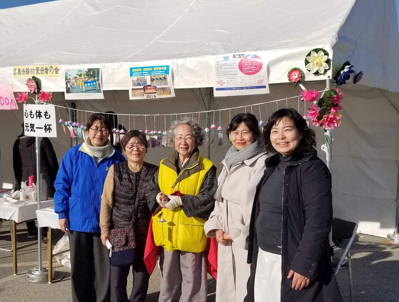 本次活动实行委员会副委员长河野房子(Kouno Fosako)来到展位前和学员合影留念。广岛的法轮功学员从二零零四年开始参加“和平与爱”的活动,实行委员会成员由开始的不明真相,到了解真相,感受到了大法的美好。