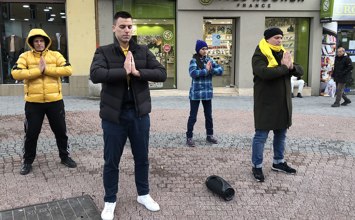 ![]() 图1:保加利亚法轮功学员在普罗夫迪夫市中心展示功法。 |