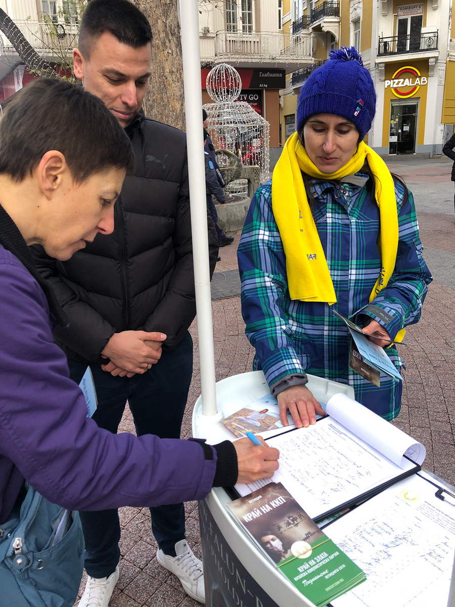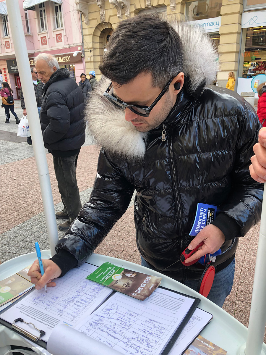 如今,越来越多的保加利亚人了解了在中国发生的这场迫害。在这次活动中,一些人已经听说过迫害真相,他们直接走上前来签名,希望支持学员。