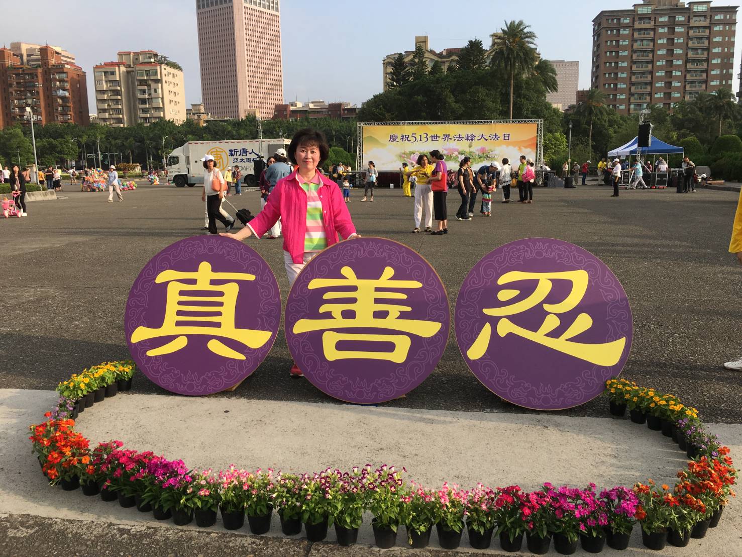 图1:林家咏于二零一八年五月十二日,在台北国父纪念馆参加「庆祝5.13世界法轮大法日」活动。