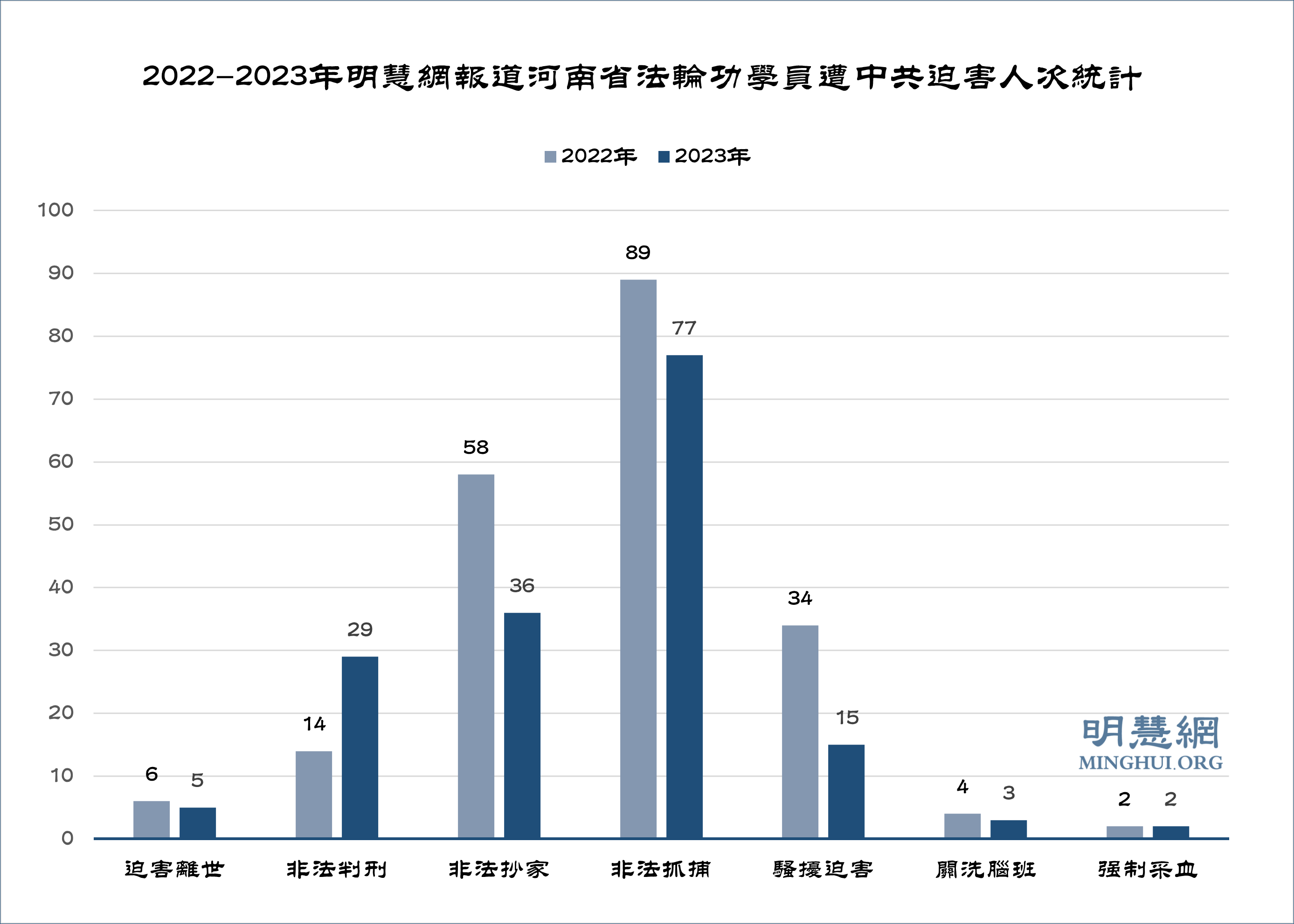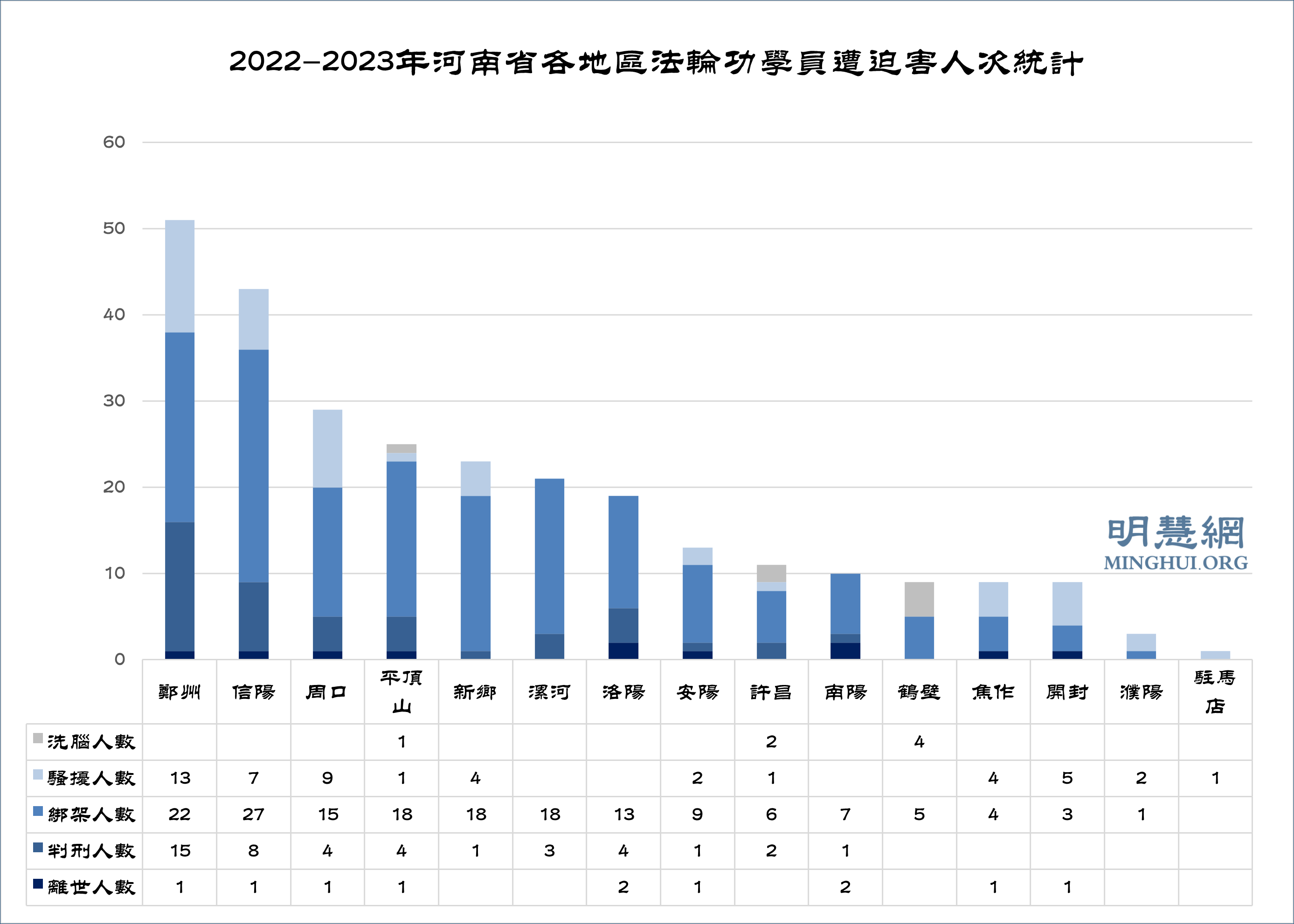 ![]() 图1:2022-2023年明慧网报道河南省法轮功学员遭中共迫害人次统计 |