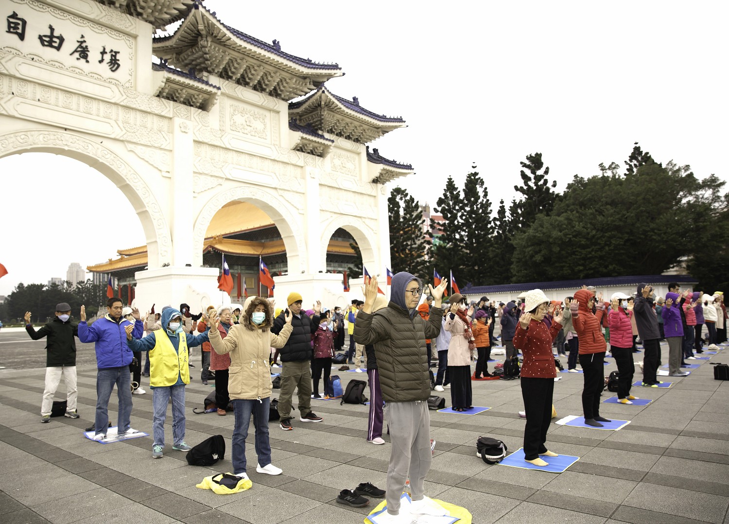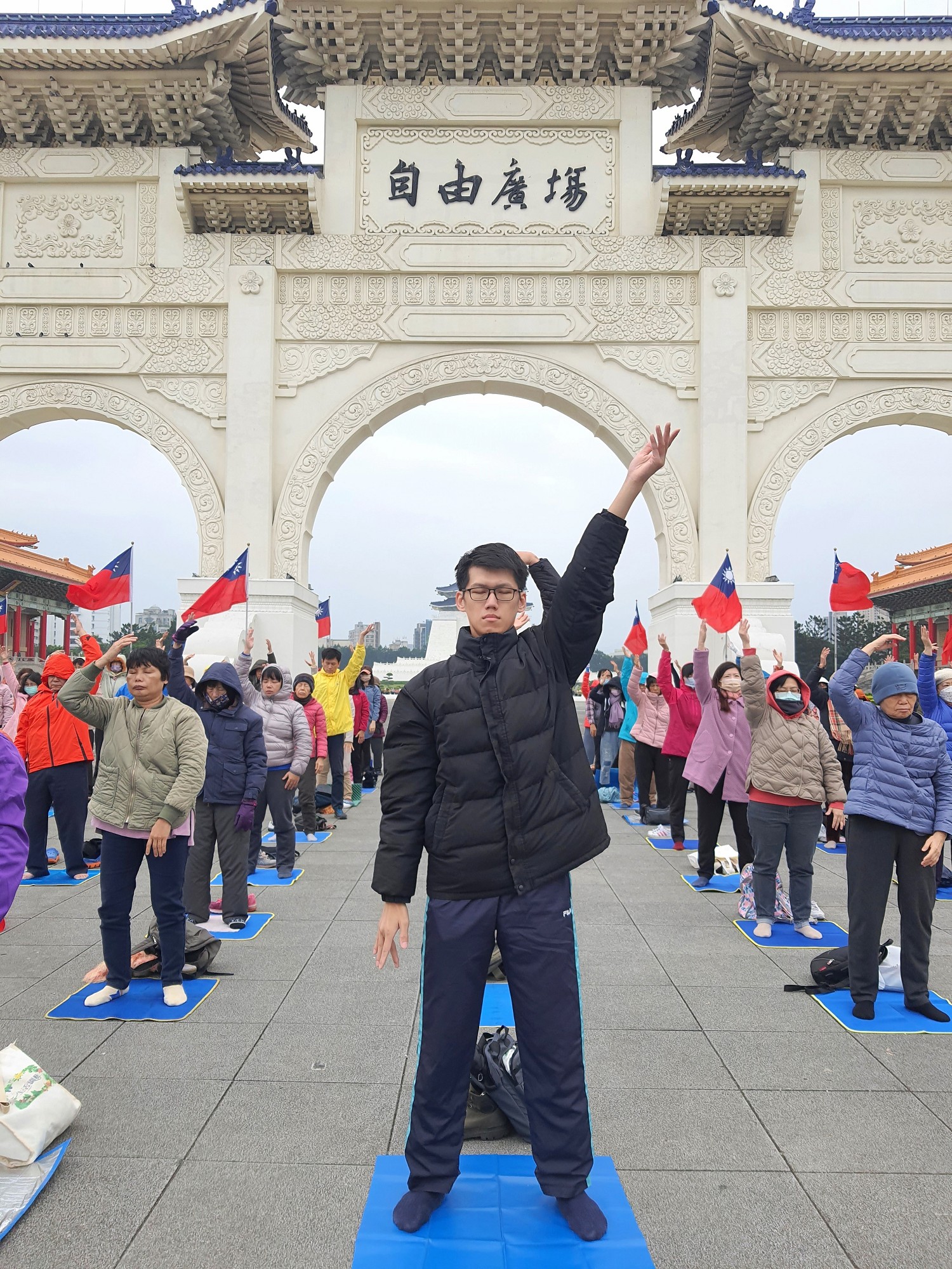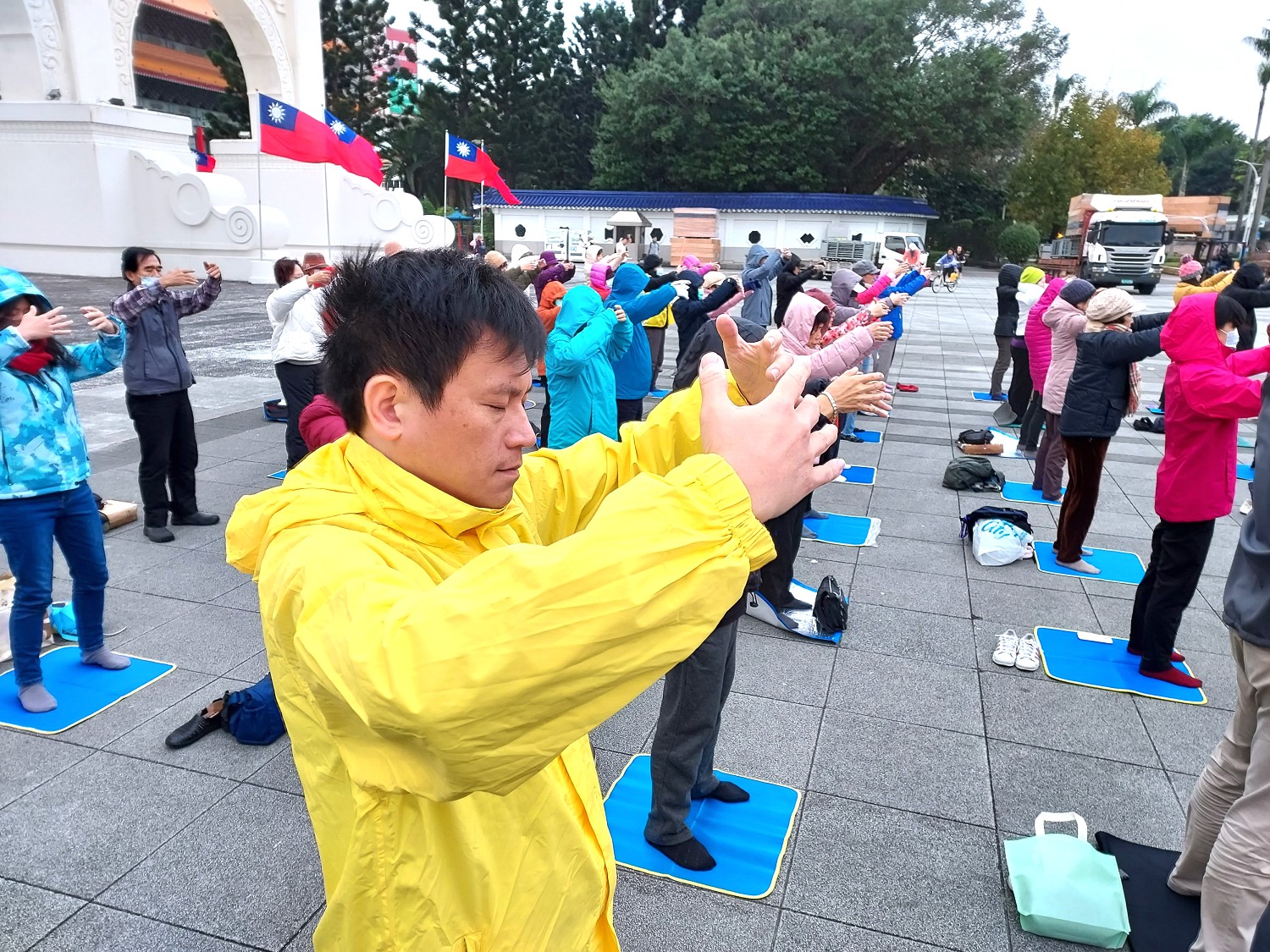 ![]() 图1~3:二零二四年一月一日元旦,台北部分法轮功学员在自由广场举行集体炼功。 |
