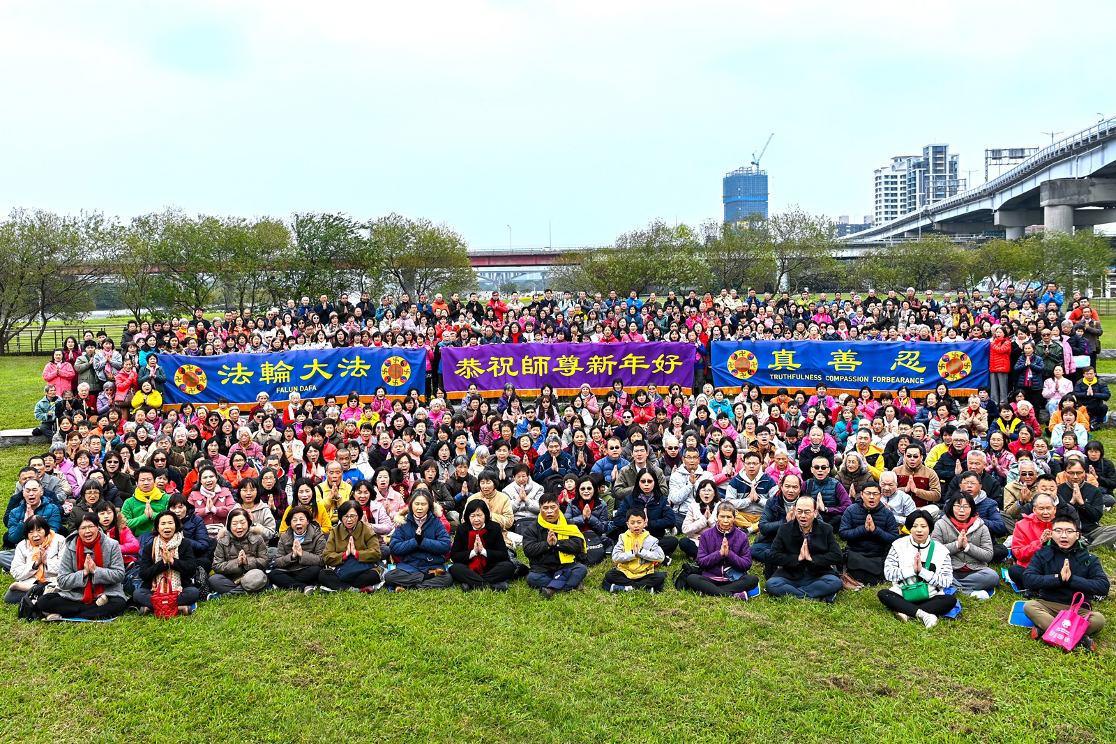 ![]() 图1:一月二十八日中午,台北法轮功学员齐聚在华江河滨公园,齐声祝贺师父新年好。 |