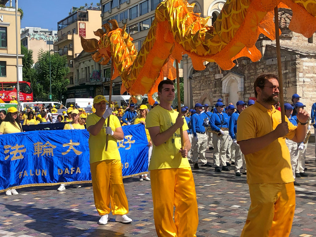 参与游行的学员来自瑞典、意大利、奥地利、德国、土耳其、塞浦路斯、罗马尼亚、克罗地亚、美国、匈牙利、法国、捷克共和国、保加利亚和希腊等国。许多观众表示非常高兴了解法轮大法,他们支持学员们反对中共在中国对法轮功的迫害。
