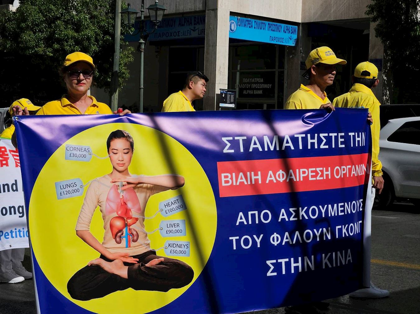 在雅典,学员为反对活摘器官的请愿书征集了签名,这项由“反对活摘器官医生组织”(DAFOH)发起的请愿书呼吁G7+7国家(编者注:G7+欧盟国家+阿根廷、澳大利亚、印度、以色列、墨西哥、南韩和台湾)将中共的活摘器官行为认定为种族灭绝和违反医学伦理的行为。在中国这一令人发指罪行的主要受害者是法轮大法学员。