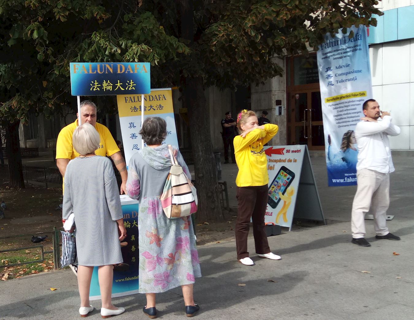 十月五日,两位女士径直走到布加勒斯特的法轮大法展位前,询问这是否就是法轮功。当学员确认后,其中一位女士表示,她很早就知道这个修炼方法。