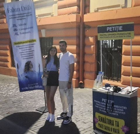 亚历山德鲁·迪努(Alexandru Dinu)来自克拉约瓦(Craiova),他是一名游泳教练和救生员,他对法轮大法感到好奇,被展板上写的道德价值观所吸引。他表示:“这些价值观非常具有代表性,它们应该代代相传,这样才能创造和谐,让每个人都做到最好,并摆脱日常的压力和烦恼。”亚历山德鲁和他的女友一起在呼吁停止迫害的请愿书上签了名。
