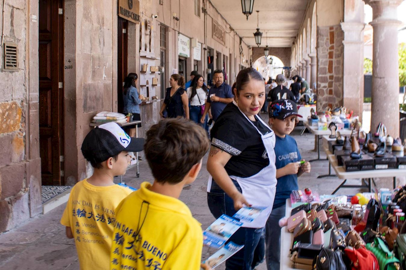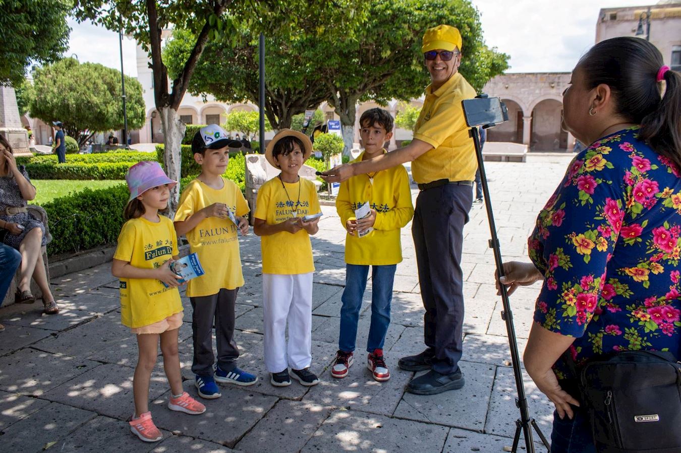孩子们和他们的父母向民众展现了法轮大法的美好,他们感动了圣米格尔埃尔阿尔托的许多人,其中包括一位记者,大法小弟子们在她周日的直播节目中接受了采访。