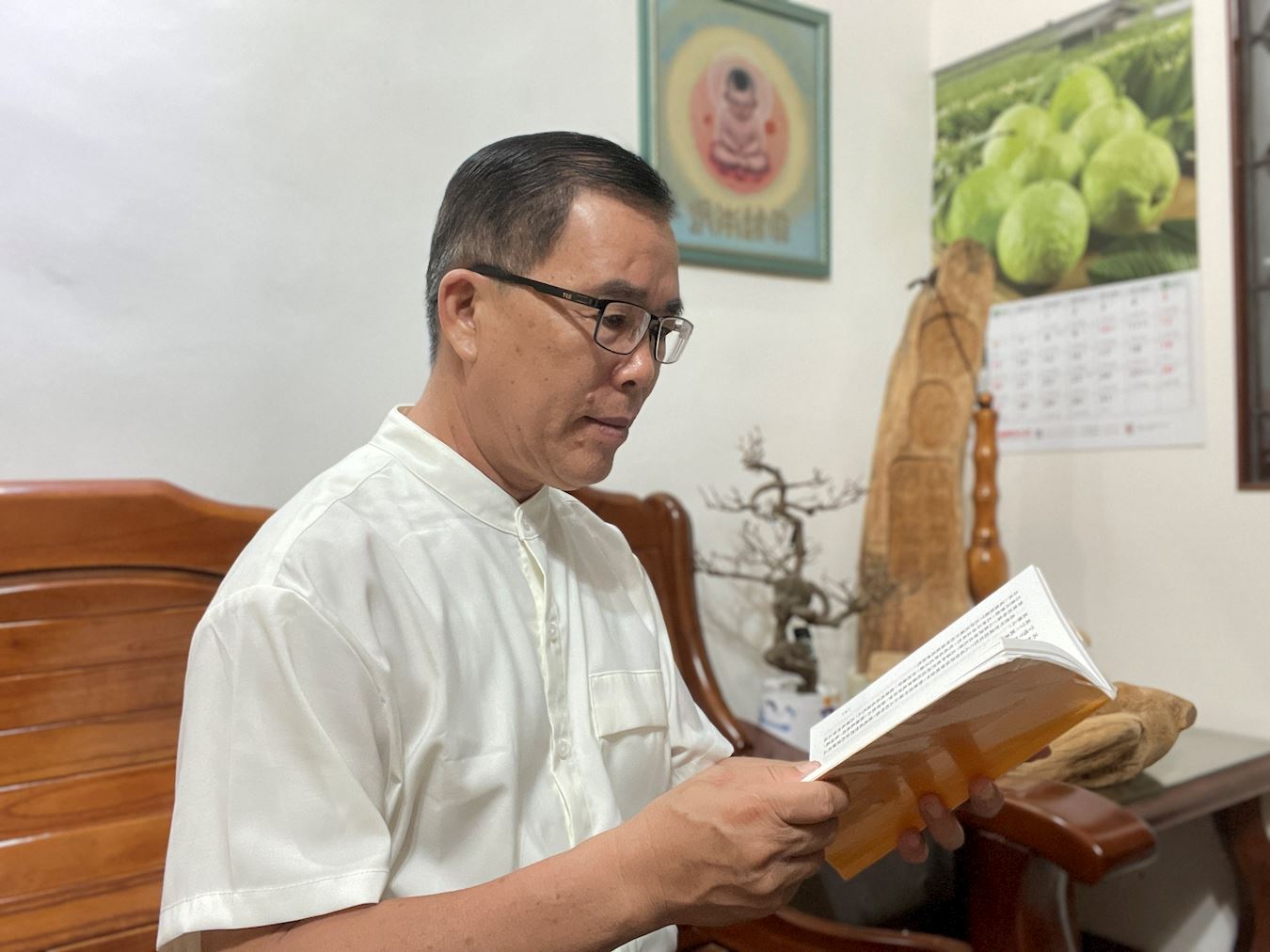 ![]() 图2:罗赐钦阅读法轮大法书籍 |