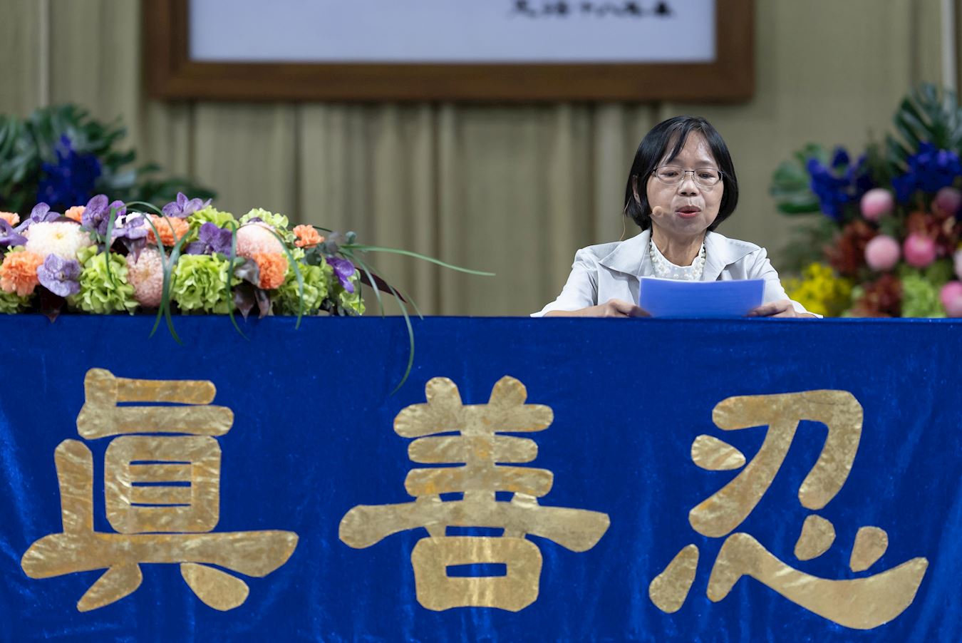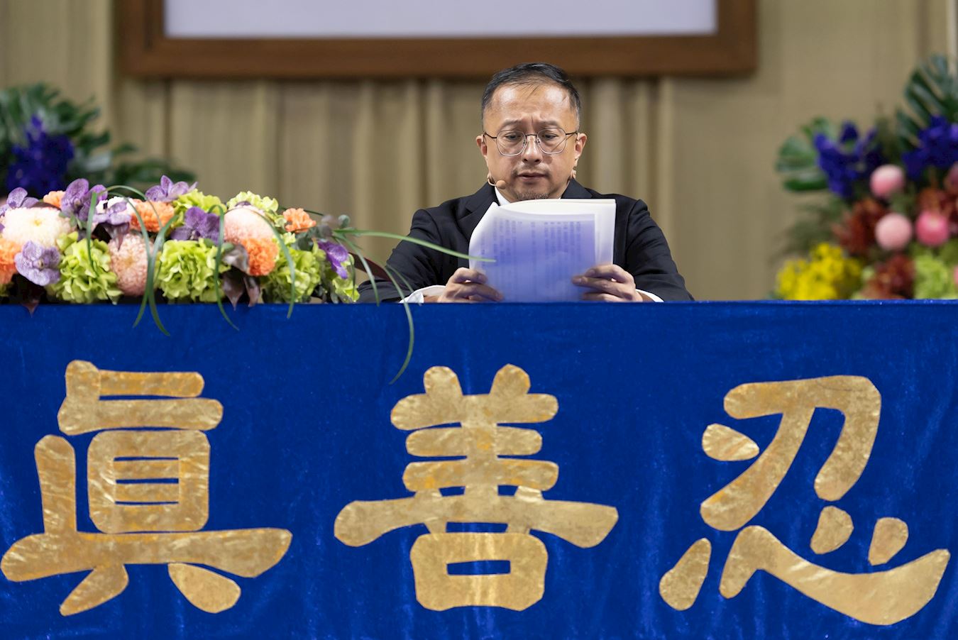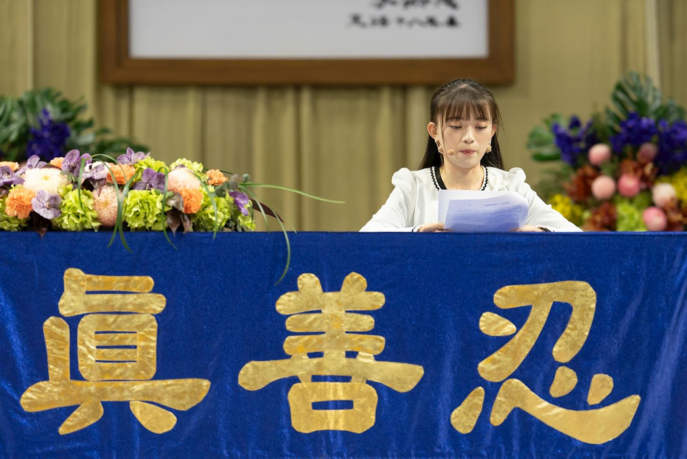 法会现场庄严祥和,十九位来自社会各行各业、不同年龄时代的法轮功学员,分享他们面对人生难关与考验时,如何坚持学法,用法中升起的正念归正自己、知难而上,并在各自环境中,守住善念、救度众生的心路历程。